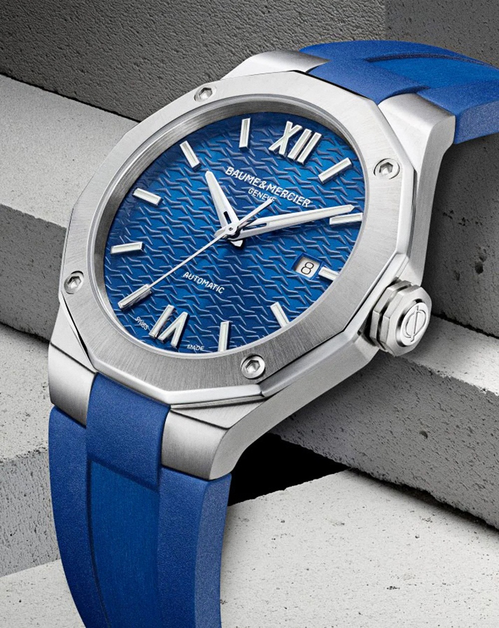 Sau 47 năm, Riviera đã tái xuất vào năm nay trong chất liệu thép với ba kích thước 36, 42 và 43mm, để làm sống lại tinh thần của kỷ nguyên chế tác đồng hồ đặc sắc. Trung thành cùng nguyên bản, chiếc Riviera tự lên dây cót xuất xứ Thụy Sỹ có đường kính 42mm này tái hiện lại các nguyên tắc cơ bản của mẫu đồng hồ huyền thoại. Tân phẩm cá tính với gờ kính dodecmon khác biệt – mười hai cạnh – đánh bóng xen kẽ chải xước nổi bật 4 vít. Nó viền quanh mặt số trang trí độc đáo trong sắc xanh lam tượng trưng cho cuộc hội ngộ thú vị giữa núi cao trập trùng và đại dương bao la (đá nổi trên mặt nước). Có khả năng đi nước 100m, chiếc đồng hồ sóng đôi vòng đeo thép hoặc dây cao su xanh dễ dàng hoán đổi.