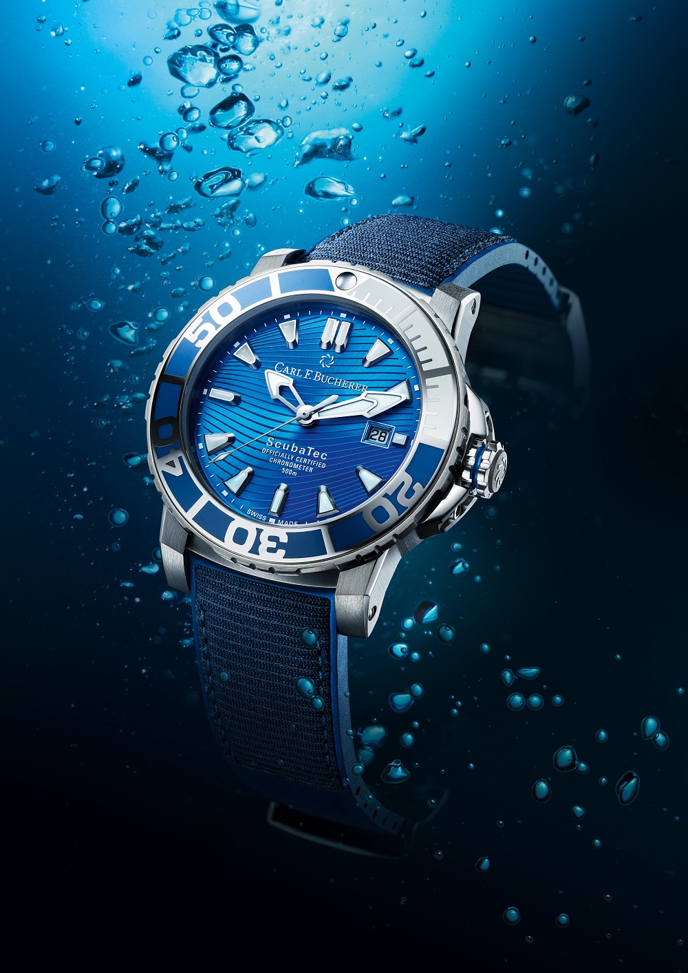 Nhằm nâng cao nhận thức về việc bảo vệ loài cá đuối và hệ sinh thái của chúng, Carl F. Bucherer đã kết hợp cùng tổ chức Manta Trust để cho ra đời Patravi ScubaTec phiên bản Maldives đặc biệt với những cải tiến về thiết kế và hiệu suất hoạt động. Được ra mắt trong bộ vỏ thép không gỉ 44,6mm với gờ xoay một chiều được trang bị một miếng chèn bằng sứ màu xanh lam, mặt số màu xanh như một đại dương thu nhỏ có họa tiết hình sóng và kết hợp với kim phát quang trong bóng tối. Được giới thiệu lần đầu vào năm 2013, Patravi Scubatec được trang bị đầy đủ để có thể lặn sâu đến 500m. Cả hai núm vặn và nắp lưng đều bắt vít nhằm đảm bảo khả năng chống lại áp lực. Mặt sau đồng hồ được chạm nổi bằng các tia manta. Ngoài ra còn có một van xả khí heli tại vị trí 8 giờ.