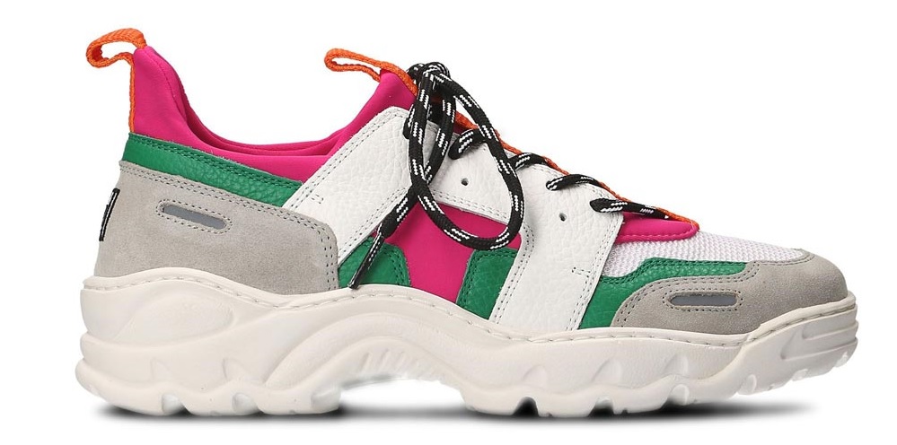 Mẫu sneaker dễ nhận ra nhất của AMI là mẫu Lucky 9, với tấm lót làm từ neoprene và đế trong làm bằng da, gọi nhớ đến phim “Back To The Future” thông qua những đường nét màu sắc và hình khối nhấp nhô của thập niên 1980. Nhưng nếu bạn đang tìm kiếm một mẫu giày bớt phô trương hơn để đi hàng ngày, thì hãy chọn mẫu sneaker có ba dây cố định với logo AMI được thêu ở gót giày.