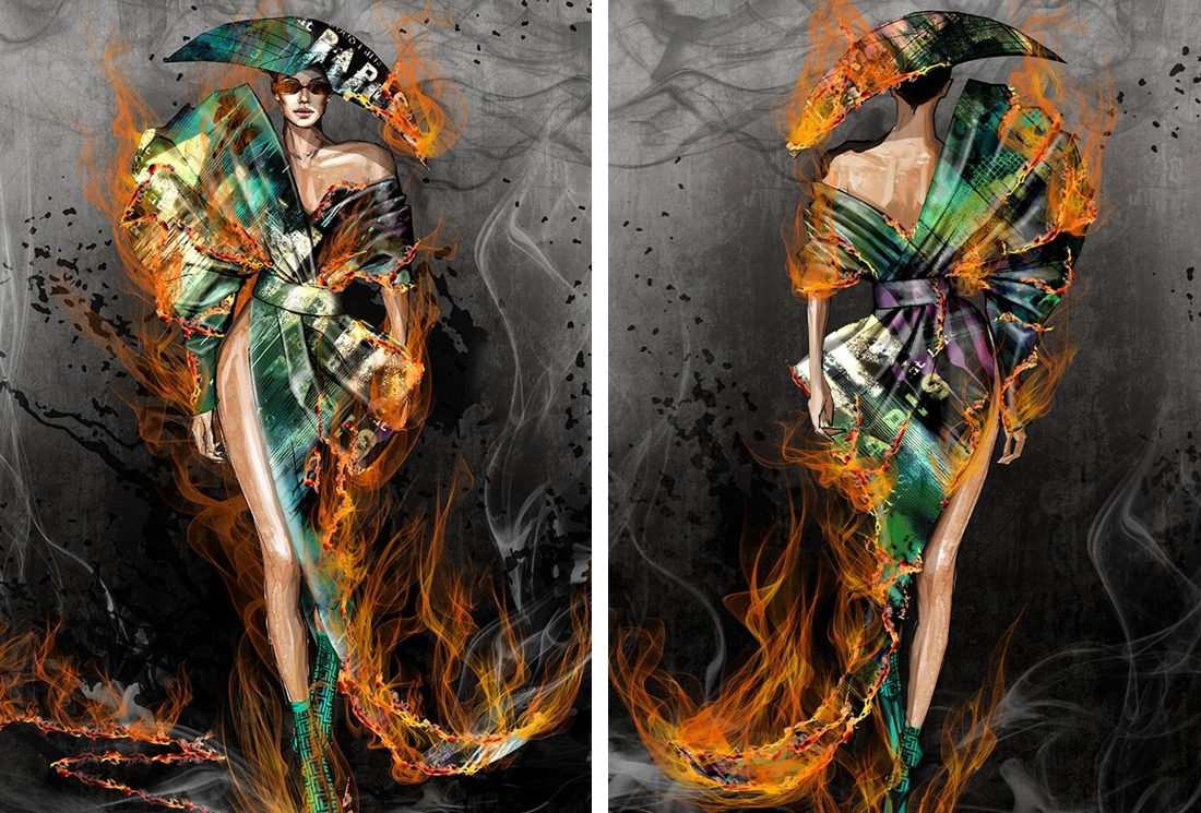 Bản phác thảo “Flame Dress” của nhà thiết kế Olivier Rousteing dành riêng cho Vogue Singapore