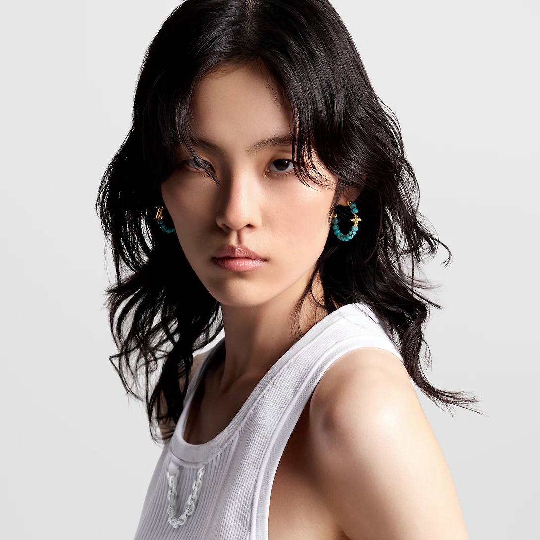 Góp phần nâng tầm phong cách trang phục, dòng trang sức My LV Pearl, nổi bật những viên thủy tinh tròn đa sắc. Chiếc vòng cổ màu ngọc lam mang đến sự tươi mới cho bộ sưu tập, gợi lên vẻ đẹp sóng biển. Trong khi đó, những món trang sức trang trí bằng thủy tinh trắng sáng bóng truyền tải nét sang trọng vĩnh cửu. Louis Vuitton còn mang đến dòng sản phẩm Nanogram Enamel, bao gồm bông tai, vòng tay và nhẫn, chạm khắc họa tiết Monogram màu hoa vân anh hoặc ngọc lam. Bên cạnh đó, vòng tay vải LV Push màu ngọc lam gắn charm đá đồng màu, hoàn hảo để người đeo tạo vẻ ngoài táo bạo khi kết hợp các tùy chọn trang sức cá tính khác.