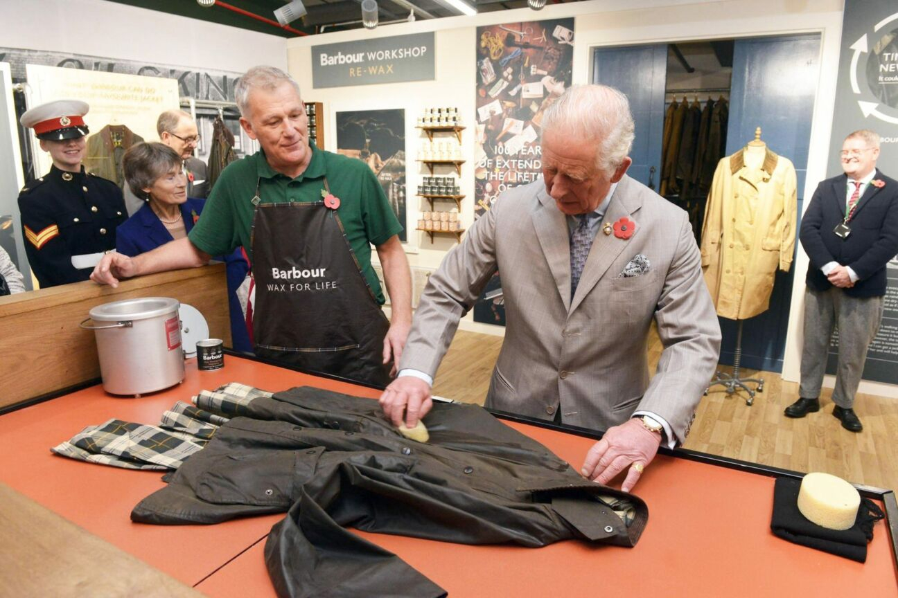 Crockett & Jones không phải là nhà sản xuất duy nhất của Anh được Nhà vua đến thăm. Mới năm ngoái, Hoàng tử xứ Wales khi đó đã có một chuyến đi lên phía bắc để tham quan nhà máy sản xuất Barbour chuyên sản xuất áo khoác. Kể từ năm 1894, thương hiệu có trụ sở tại South Shields này đã giữ chân được rất nhiều khách hàng trung thành. Bản thân Vua Charles III rất đỗi ưa thích một trong những chiếc áo khoác sáp cổ điển của hãng với cổ áo bằng vải nhung và cấu trúc bông màu xanh đậm mang tính biểu tượng.