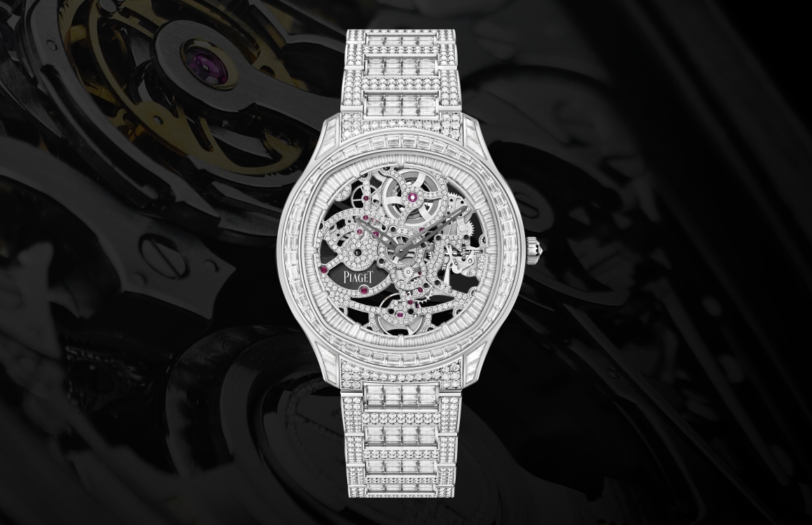 Là một trong số ít các nhà sản xuất có khả năng thiết lập chuyển động cơ học bằng kim cương, Piaget tự hào nối tiếp kỷ lục lẫy lừng về những bộ máy đính đá quý sang trọng đạt độ mỏng hiếm thấy khi tuyệt tác Polo Skeleton chỉ dày 7,99mm. Hoàn thiện tuyệt phẩm trang sức này là dây đeo được khảm hoàn toàn 1.442 viên kim cương nâng tầm phong cách quyền quý.