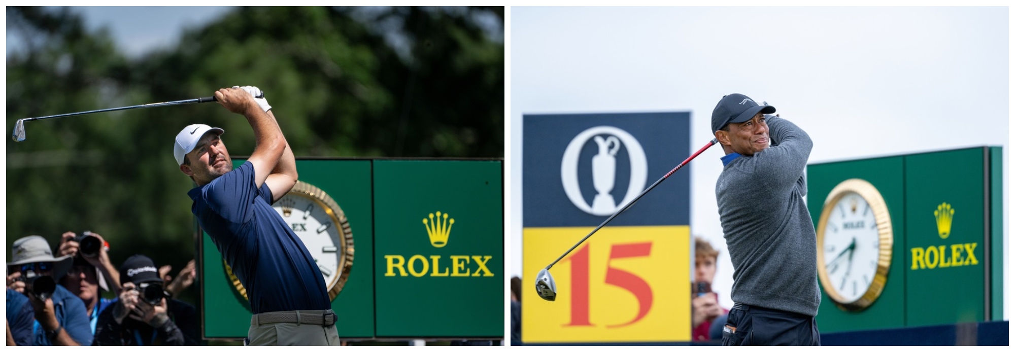 Từ trái qua: Scottie Scheffler – Golfer và Rolex Testimonee; Tiger Woods – Golfer và Rolex Testimonee