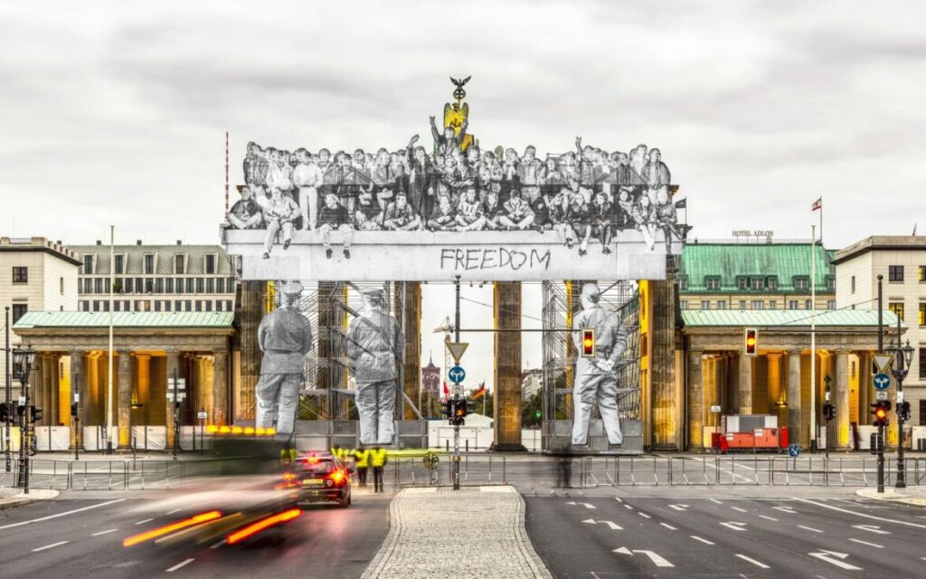 JR, Những Người Khổng Lồ, Cổng Brandenburg, ngày 27 tháng 9 năm 2018, 6h57, IrisHesse, Ullstein Bild, Roger-Viollet, Berlin, Đức, 2018.