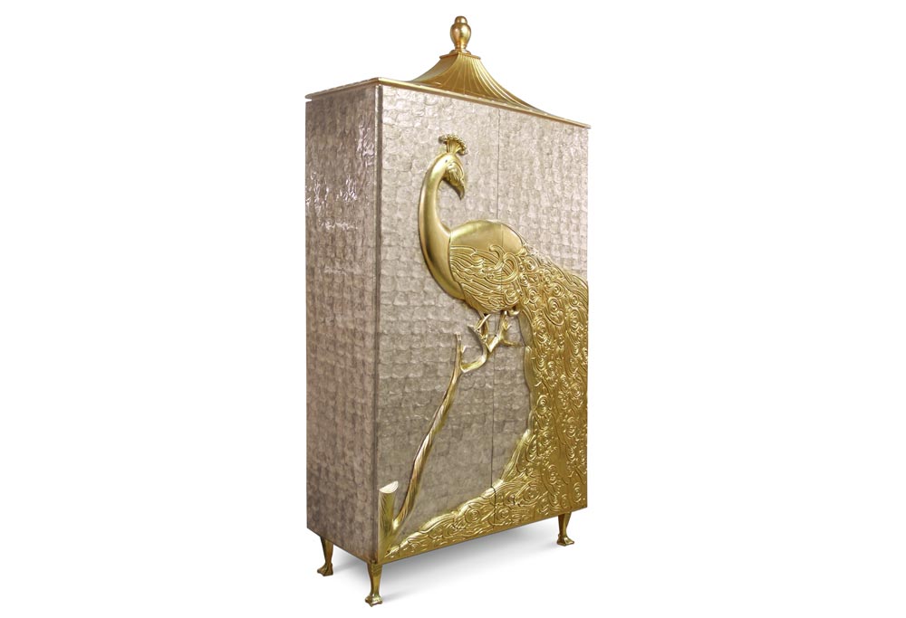 “Thiết kế với lông vũ, màu sắc và chất liệu đã là hiện thân cho con người tôi. Tay nắm cửa được làm theo dải ruy băng buộc tóc của một cô gái, cuộn lấy thinh không đầy kiều diễm. Những chiếc lá vàng và lông công tri ân tình yêu của tôi dành cho vẻ trang nhã, và phần nóc tủ hình mái chùa dành cho sự mê hoặc tôi dành cho kiến trúc và thiết kế châu Á.”