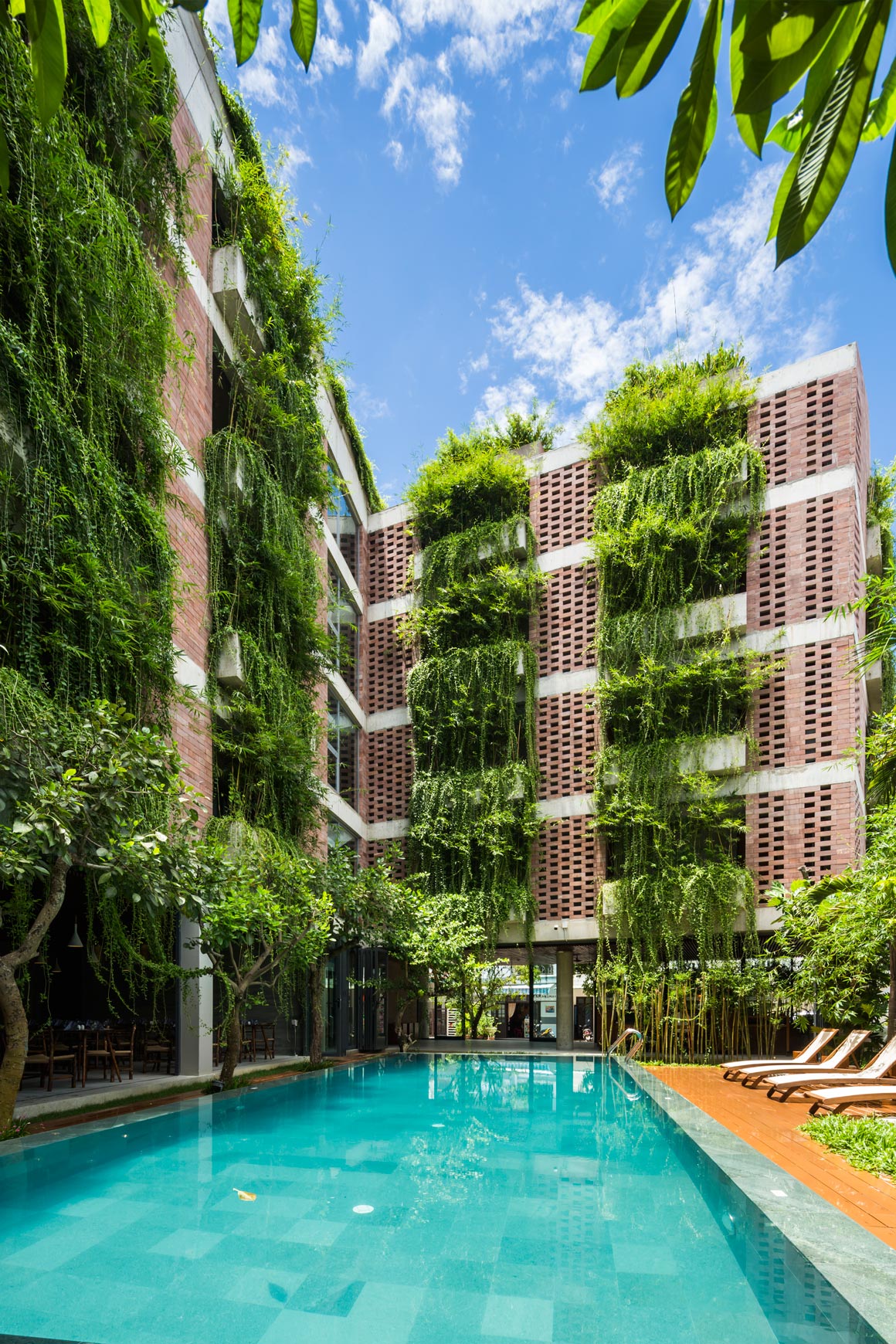 Được xem là một trong những dự án nổi bật của Võ Trọng Nghĩa, Atlas Hotel duyên dáng ẩn mình giữa lòng phố cổ Hội An mang đến cảm giác an yên và thanh bình bởi những mảng xanh được khéo léo trải khắp ban công mặt tiền, dọc theo hành lang và phần mái của khách sạn. Được thiết kế 5 tầng với 48 phòng nghỉ tiêu chuẩn quốc tế 4 sao, khách sạn tạo ấn tượng mạnh trong lòng du khách bởi một không gian xanh tươi, thân thiện và vô cùng trong lành. Nằm trên con đường nối dài thành phố Đà Nẵng với phố cổ Hội An, Naman Retreat là sự kết hợp hài hòa giữa những nét đẹp văn hóa Việt Nam cùng vẻ thanh lịch của kiến trúc đương đại. Vẫn trung thành với các chất liệu giản dị, mộc mạc, Võ Trọng Nghĩa đã mang đến không gian nghỉ dưỡng hoàn hảo với vẻ đẹp sang trọng mà vẫn gần gũi, tạo cảm giác ấm áp, thân thuộc cho du khách.