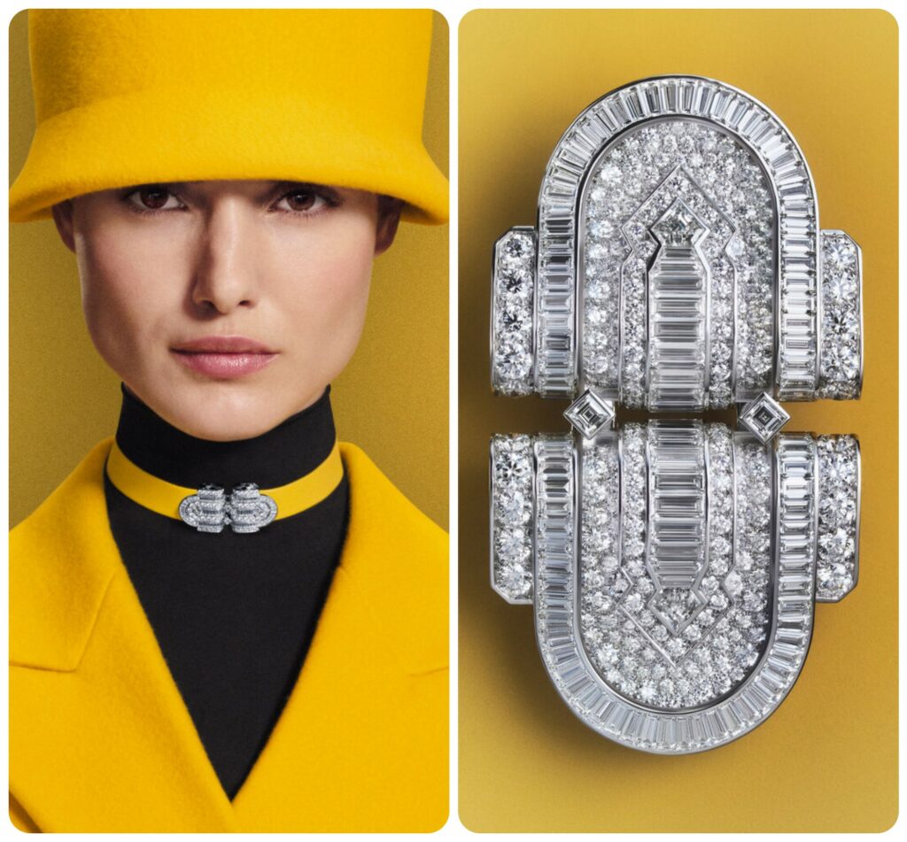 Lemon Slice tái hiện mẫu 1937 bằng kim cương trắng trên vàng trắng, có thể trở thành barrette, brooch, choker hoặc vòng tay nhờ dây da, một cách làm mới haute joaillerie cho thế kỷ 21.