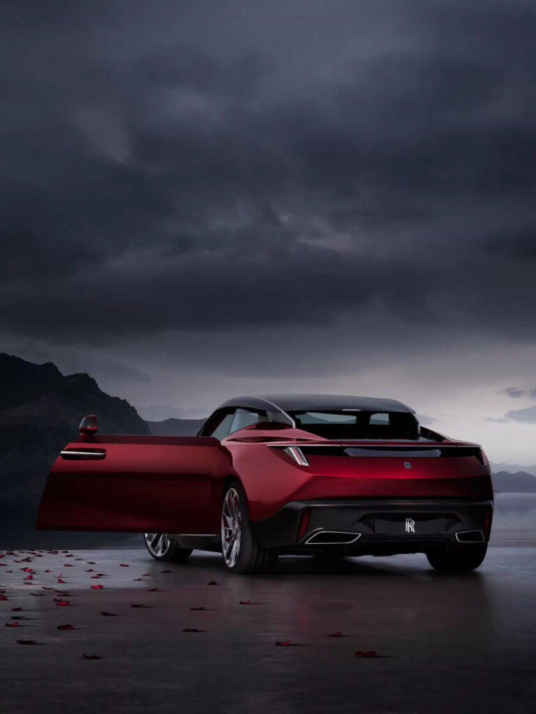 a Rose Noire Droptail là chiếc xe hai chỗ ngồi đầu tiên của Rolls-Royce trong kỷ nguyên hiện đại. Với chiều dài 5,3 mét, chiếc speedster này mang tỷ lệ gọn gàng, khỏe khoắn nhưng vẫn giữ nguyên sự bề thế quen thuộc. Thiết kế chịu ảnh hưởng từ tinh thần phóng khoáng của những chiếc Rolls-Royce tại Mỹ thời kỳ giữa hai cuộc chiến, khi chủ nhân tự cầm lái thay vì ngồi sau. Lấy cảm hứng từ hoa hồng Black Baccara, màu sơn đỏ đen biến ảo cùng những đường nét uyển chuyển, Droptail mở ra một ngôn ngữ thiết kế vừa mới mẻ, vừa đậm chất di sản.