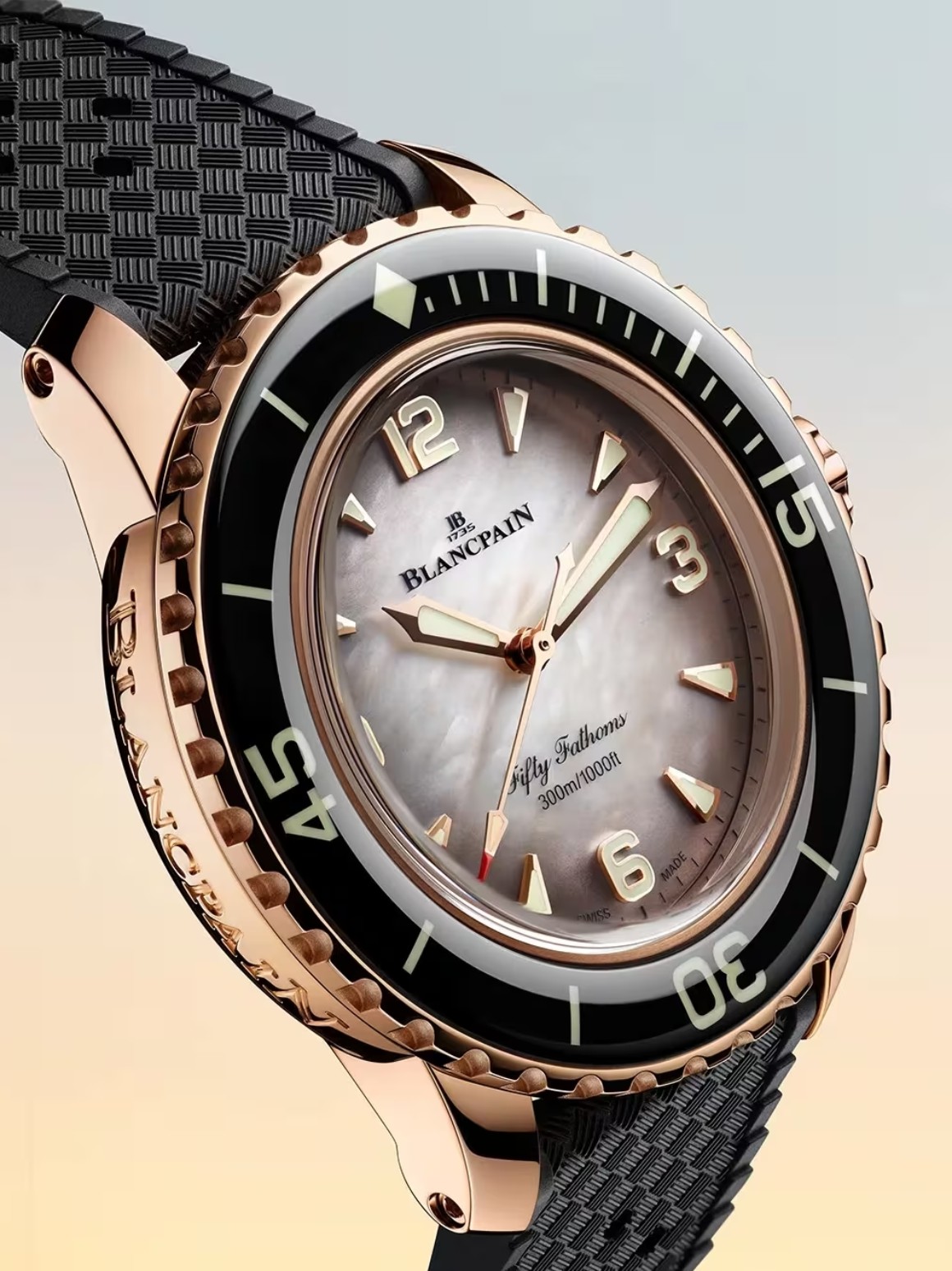 Trong thế giới đồng hồ lặn, cái tên Fifty Fathoms của Blancpain từ lâu đã được xem như một huyền thoại. Ra mắt lần đầu vào năm 1953, đây chính là chiếc đồng hồ lặn hiện đại đầu tiên, mở ra kỷ nguyên mới cho những ai dấn thân vào lòng đại dương. Giờ đây, biểu tượng ấy đã được tái sinh một cách đầy duyên dáng trong phiên bản 38mm, một thiết kế dành riêng cho nữ giới, những người không chỉ chinh phục biển cả bằng bản lĩnh, mà còn bằng cả vẻ đẹp và sự tinh tế.