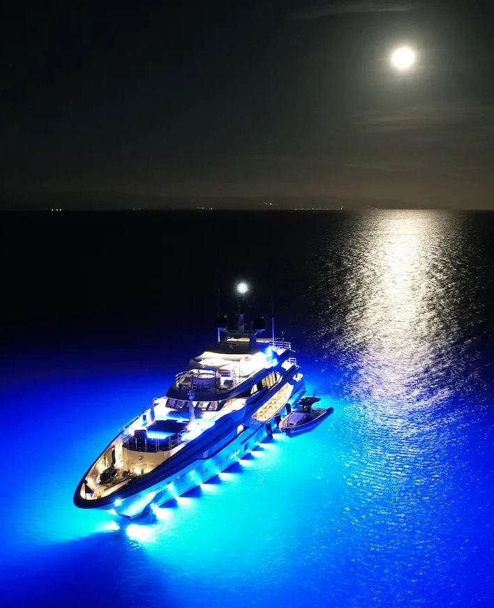 Từ thời điểm bổ sung chiếc siêu du thuyền AJ vào bộ sưu tập của mình, chủ sở hữu của nó đã có sẵn trong đầu một vài ý tưởng rõ ràng và thú vị. Mục tiêu không gì khác là gia tăng sự nổi bật của chiếc du thuyền dòng Benetti FB800 và hệ thống đèn chiếu sáng dưới nước công nghệ cao của Lumishore đã được lựa chọn.