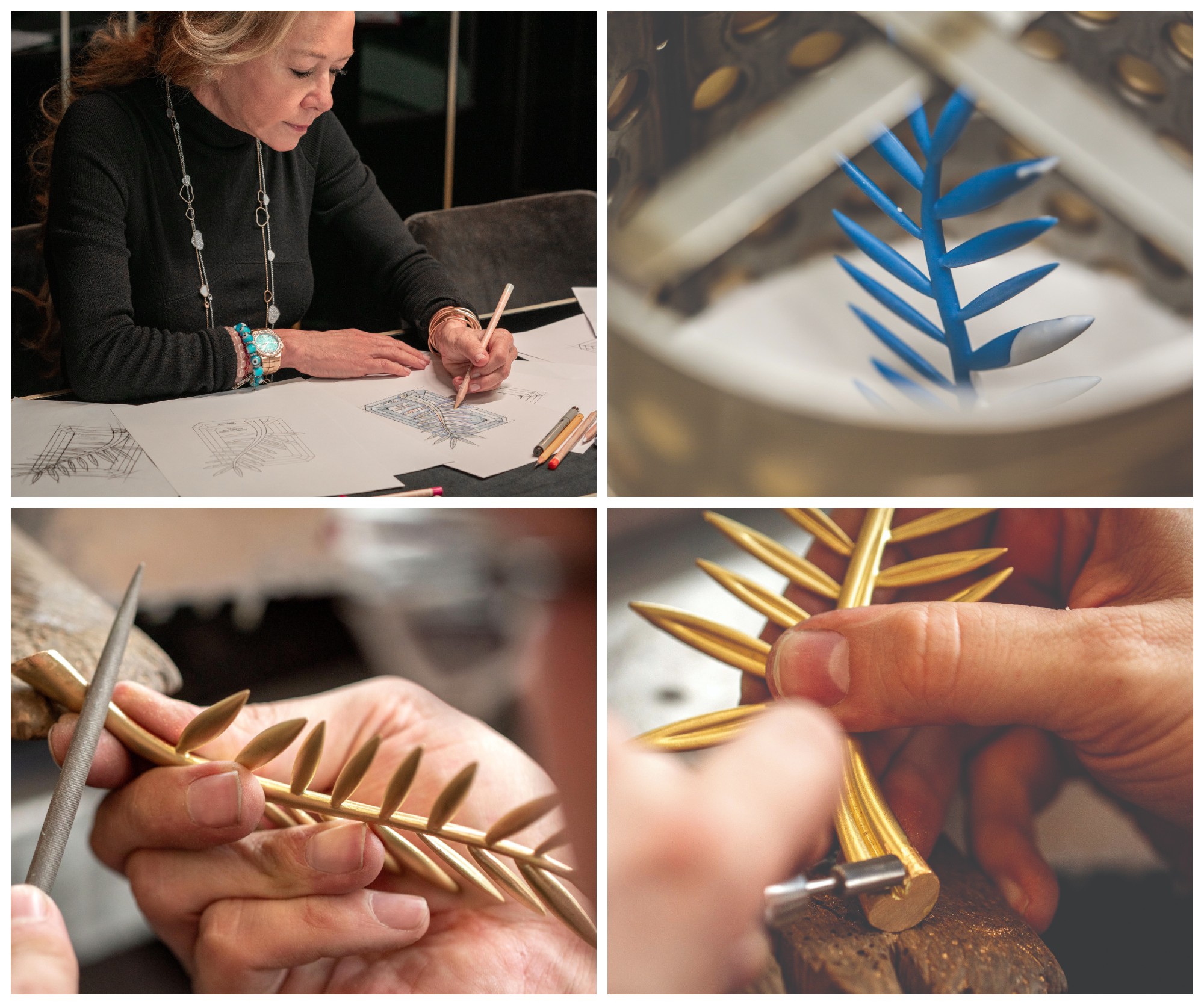 Mặc dù không cầu kỳ như một tuyệt phẩm trang sức Chopard, nhưng mỗi chiếc cúp đều được chăm chút tỉ mỉ, đòi hỏi một thợ kim hoàn và nhóm sáu nghệ nhân làm việc không dưới 70 giờ. Cúp được làm từ 118 gram vàng khai thác hợp đạo đức mang chứng nhận Fairmined trong xưởng đúc nội bộ Chopard, thông qua kỹ thuật đúc sáp cổ xưa, trước khi trải qua giai đoạn cắt tỉa, làm sạch, đánh bóng và lắp ráp. Cành Cọ Vàng sáng tạo bởi Chopard vẫn là chiếc cúp điện ảnh duy nhất trên thế giới cấu thành từ vàng hợp đạo đức.