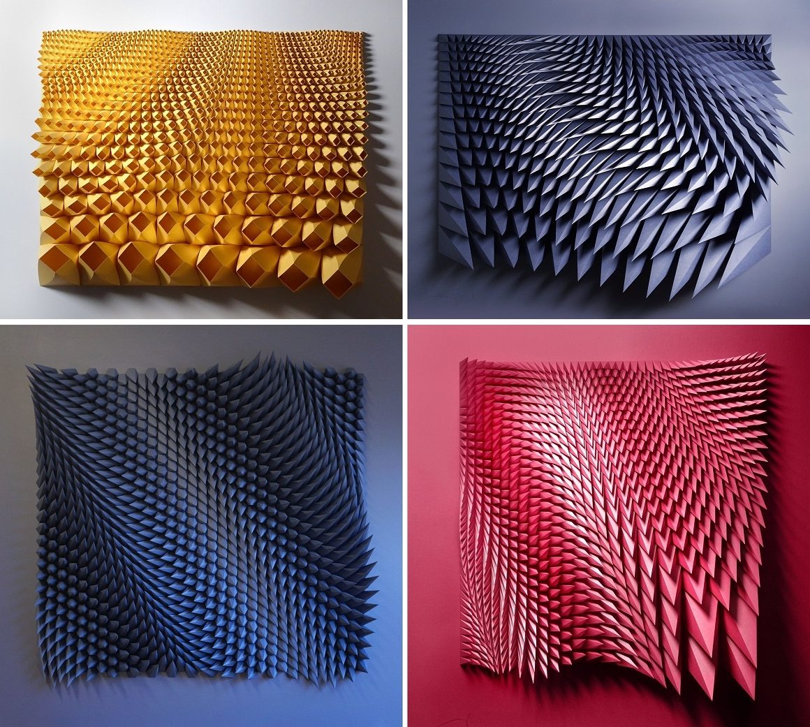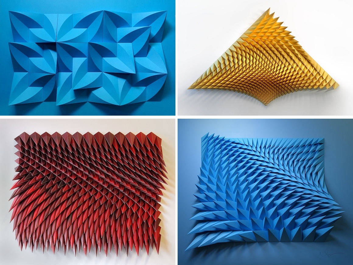 Kỹ sư giấy kiêm nghệ sĩ người Mỹ Matt Shlian đã tạo ra một bộ sưu tập gồm các tác phẩm điêu khắc từ giấy với hiệu ứng thị giác chuyển động tinh xảo, đẹp mắt. Lấy cảm hứng từ những ý tưởng mới lạ như thiết kế pin mặt trời, cấu trúc protein, tạo hình ngói của Hồi giáo,… mỗi tác phẩm đều mang một nét cuốn hút riêng khiến người ta không thể rời mắt.