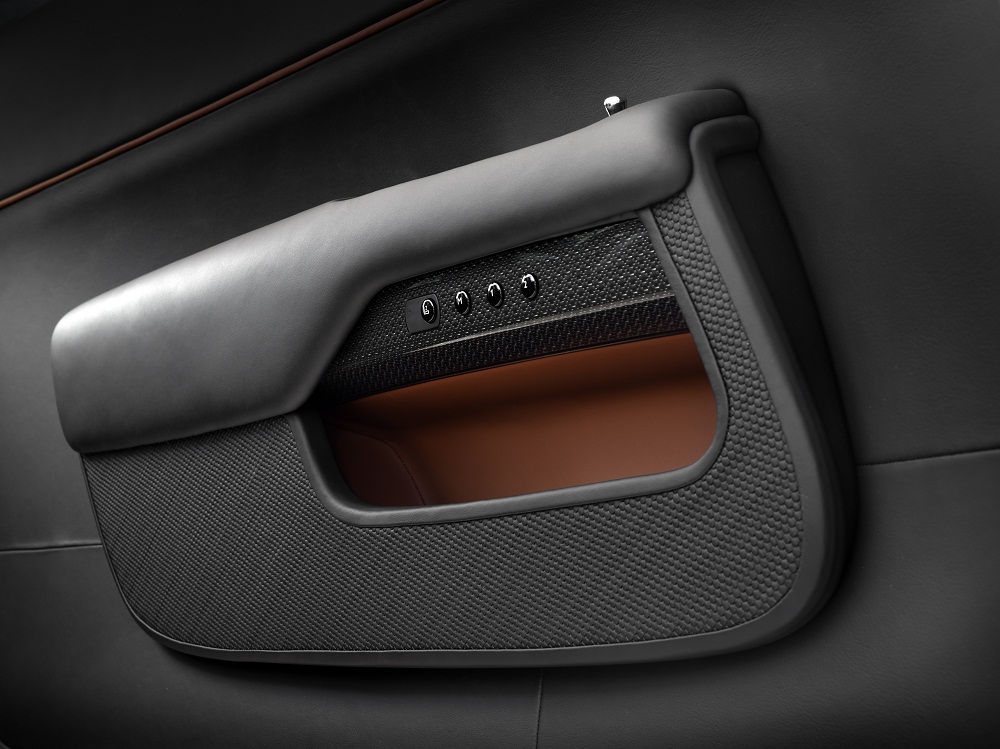 Sườn xe được làm nổi bật bằng các đường coachline đôi màu đỏ Mugello và đen, phản chiếu vào trong với ghế da đen và các điểm nhấn màu đỏ rượu óng ánh, chạy dọc các cánh cửa và ghế. Lớp trang trí bảng điều khiển làm từ gỗ sồi Tudor nhẵn mịn cũng được tôn vinh lên bởi một đường may duy nhất màu đỏ đồng nhất dọc theo bảng điều khiển, và hoàn thiện bằng một chiếc đồng hồ Bespoke của Rolls Royce.