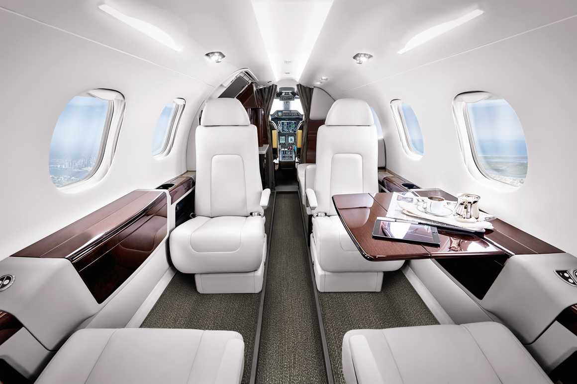 Bên trong chiếc phi cơ Phenom 300E là chỗ ngồi cho 10 người (bao gồm phi công) và thậm chí còn có cả một nhà vệ sinh cùng với bếp ăn. Yêu cầu đường băng cất cánh chỉ hơn 950 mét, chiếc máy bay này sẽ giúp bạn tiết kiệm được khoảng thời gian đáng kể nhờ khả năng có thể hoạt động ở các sân bay cấp khu vực.