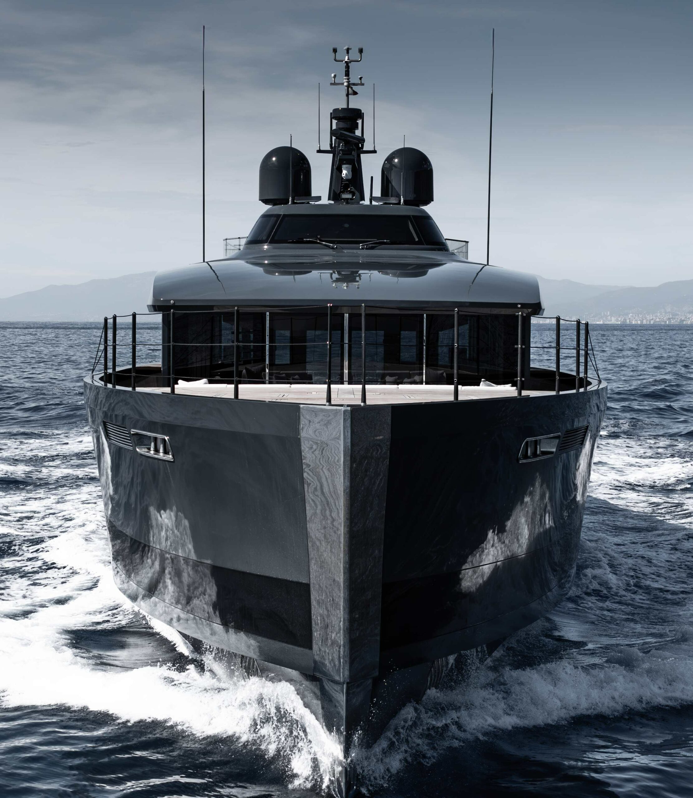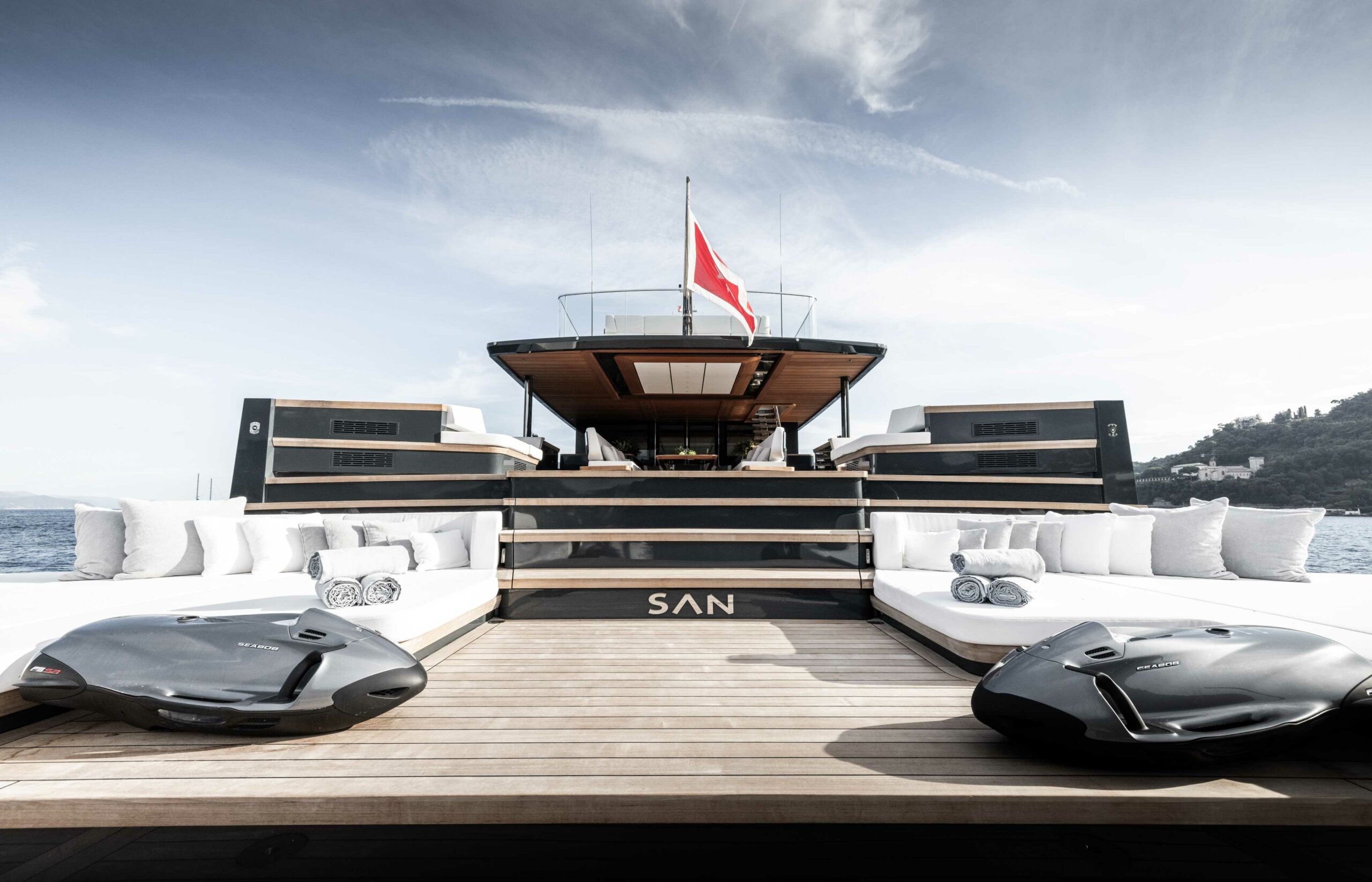 iêu du thuyền mới SAN dài 45m là một thành tựu vượt bậc về kỹ thuật và thiết kế, với dáng vẻ thanh mảnh và khả năng duy trì tầm nhìn không gián đoạn ra biển, đồng thời tối ưu hóa không gian sống bên trong, mang lại sự thoải mái vượt trội. SAN được đóng tại Thổ Nhĩ Kỳ bởi Alia Yachts. Cả ngoại thất và nội thất đều do Sinot Yacht Architecture & Design thiết kế, trong khi kiến trúc hàng hải do Lateral Naval Architects đảm nhận.