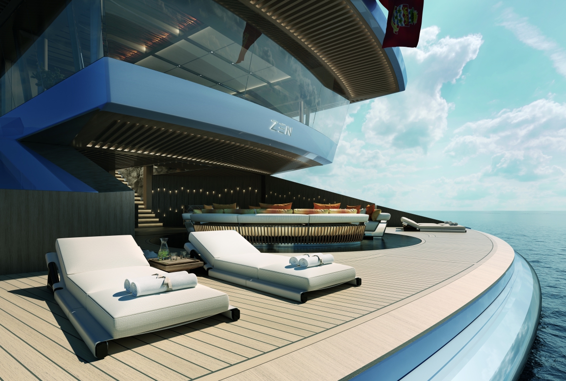 hỏa mãn tiêu chí tiện nghi và phiêu lưu, siêu du thuyền Zen của Sinot Exclusive Yacht Design và Feadship Royal Dutch Shipyards là giải pháp tối ưu giải quyết mọi vấn đề nan giải về mặt thiết kế. Để hành khách có tâm lý hoàn toàn dễ chịu như ở nhà, Sinot và Feadship đã thiết kế nên một chiếc thuyền kết hợp nhuần nhị giữa thiết kế villa ven biển, gác mái trong nhà và nhà trời. Cửa mái, vách trượt và ban công có thể mở rộng mời gọi làn gió tự nhiên tràn vào lấp đầy không gian bên trong du thuyền.