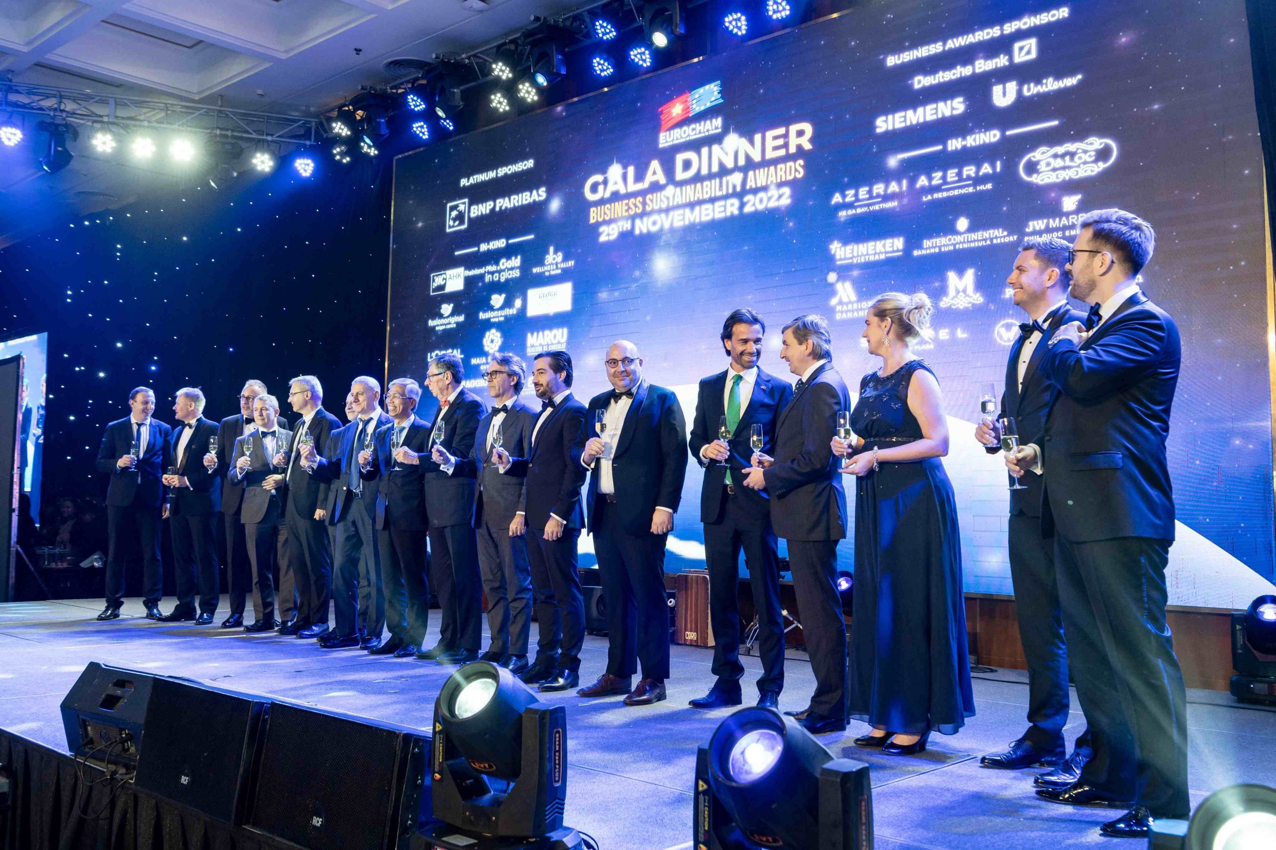 Hiệp hội Doanh nghiệp châu Âu tại Việt Nam (EuroCham) và gần 600 lãnh đạo doanh nghiệp, nhà đầu tư, lãnh đạo các tổ chức quốc tế và cơ quan ngoại giao đã quy tụ trong buổi Tiệc chiêu đãi thường niên và Lễ trao giải thưởng Doanh nghiệp Bền vững vào tối ngày 29 tháng 11 tại Vinpearl Landmark 81, TP. Thành phố Minh. Hội nghị được tổ chức trong khuôn khổ Diễn đàn & Triển lãm Kinh tế Xanh (GEFE) 2022 kéo dài ba ngày của EuroCham.