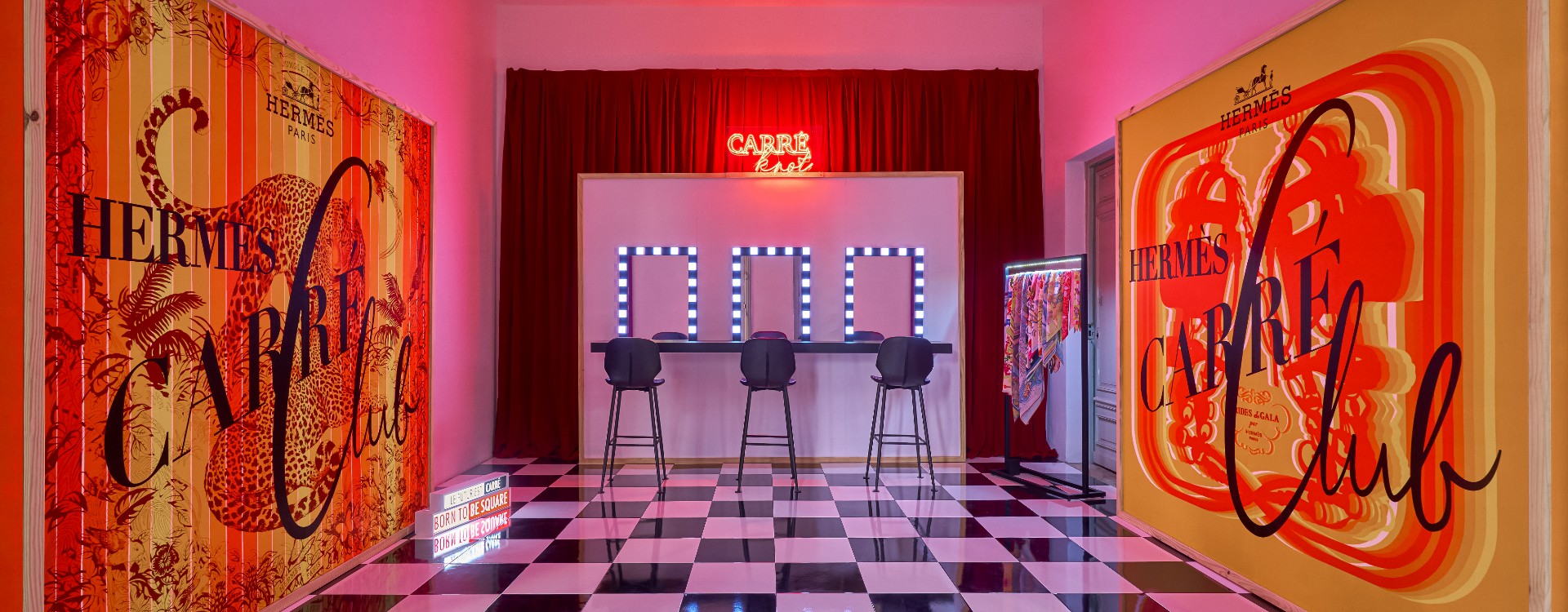 ermès Carré Club là một không gian sắp đặt có tính tương tác cao với tâm điểm là những chiếc khăn lụa của Hermès. Vui tươi và thoải mái, triển lãm này mang đến cơ hội gặp gỡ và trò chuyện cùng những nghệ sĩ minh họa, bao gồm những gương mặt đã hợp tác lâu năm cùng thương hiệu và những tài năng mới đến từ khắp mọi miền trên thế giới, và từ các nền tảng văn hóa khác biệt. Như một đấu trường để khám phá và trải nghiệm, Hermès Carré Club mang đến cái nhìn độc đáo về những đôi bàn tay tài hoa đã làm nên họa tiết trên các bộ sưu tập lụa dành cho nam và nữ. Khách tham quan sẽ được khám phá những chiếc khăn của Hermès như một không gian của trí tưởng tượng và sự tự do, pha trộn các phong cách để thể hiện bản thân với sự tinh tế, sang trọng và nhẹ nhàng, nơi bạn có thể chơi đùa với các thiết kế, những màu sắc, nhiều hình dáng và vô vàn chất liệu. Hermès Carré Club đến với thành phố Hồ Chí Minh sau chuyến công du qua Paris, Singapore và Dubai. Bắt nguồn từ mong muốn chia sẻ và giao lưu cùng công chúng, triển lãm hướng đến việc dẫn dắt người xem qua những trải nghiệm sôi nổi và bất ngờ.