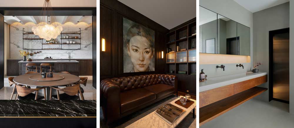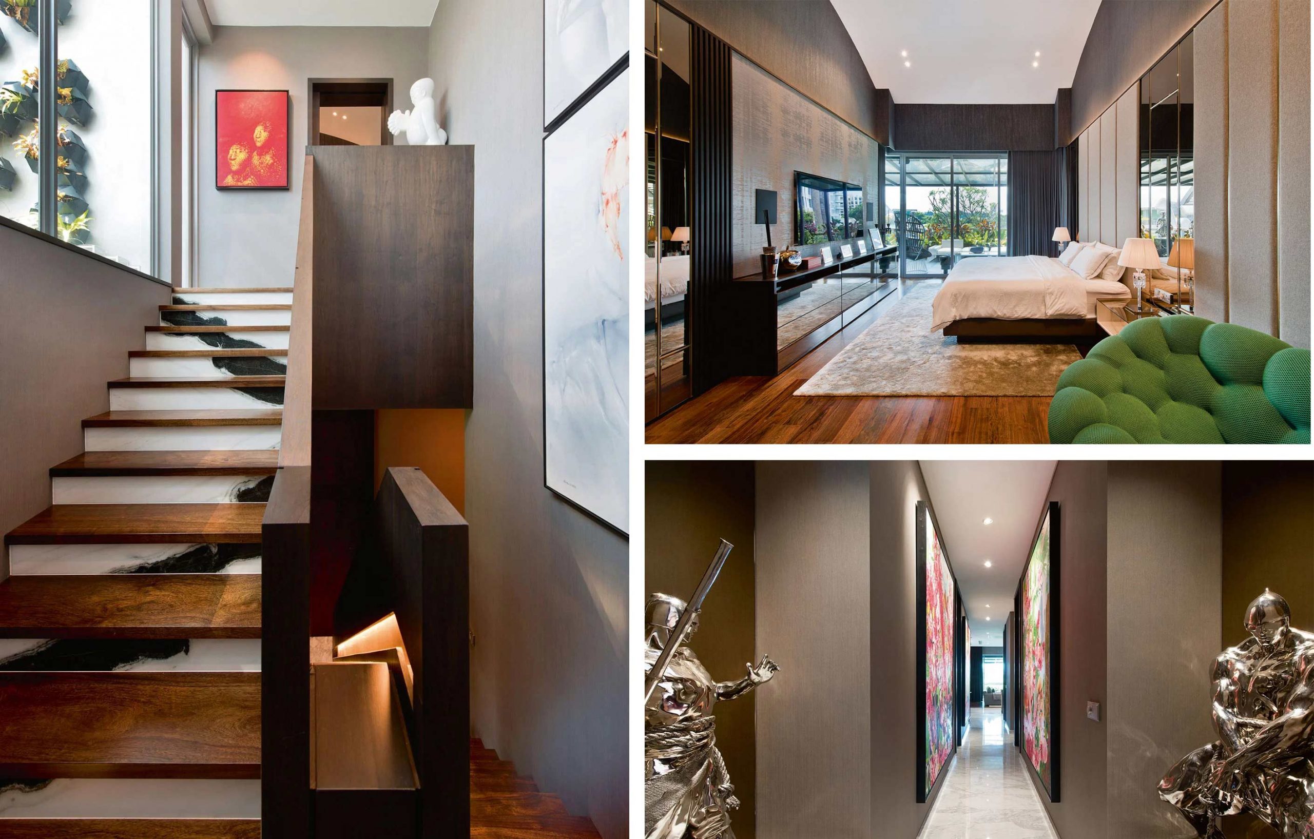 Sàn của căn penthouse được Bu Shukun chọn để bố trí khu sinh hoạt chung, nơi gia chủ tiếp đón gia đình, bạn bè và các đối tác làm ăn. Đây cũng là không gian chính nơi Soh, người đã có hơn 15 năm sưu tầm nghệ thuật và các tác phẩm điêu khắc, dùng làm nơi trưng bày công trình đáng ngưỡng mộ của mình. Tầng trên là phòng nghỉ chính dành cho cặp đôi, cũng là không gian mà Bu Shukun phải trăn trở tìm cách cân bằng sở thích thẩm mỹ đối lập của Jeffrey Soh và Selina Chong. Trong khi Jeffrey nghiêng về những bảng màu tối hơn, có sở thích về chất liệu phong phú và những thiết kế ấn tượng, thì Selina lại thích nội thất sáng sủa và thoáng mát với những họa tiết trang nhã cùng bảng màu trầm lặng.
