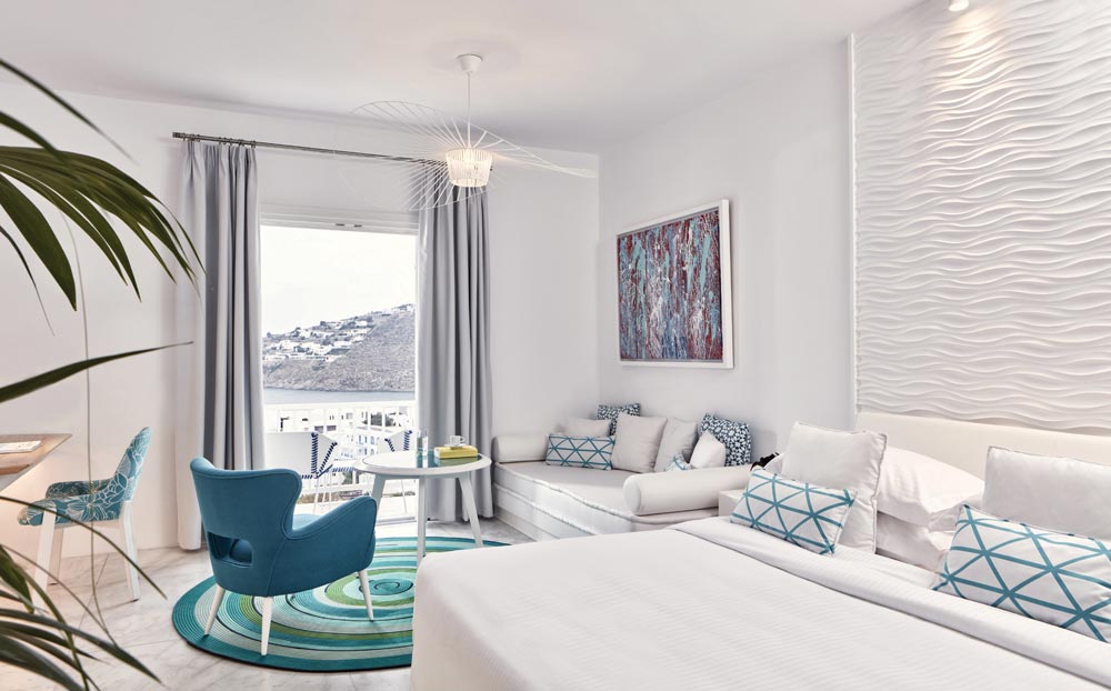 Dù ẩn mình yên ả bên bờ biển Elia với bãi cát trải dài miên man hay chọn mình một vị trí đặc biệt giữa trung tâm náo nhiệt Mykonos, mỗi khu nghỉ dưỡng của Myconian đều được tôn tạo bởi sự sang trọng và cảnh sắc thiên nhiên đẹp đến nao lòng. Hòa cùng vẻ đẹp mang đậm dấu ấn Hy Lạp với sắc xanh – trắng đặc trưng, từng không gian hiện lên như một cô gái vùng biển đẹp dịu dàng nhưng không thiếu đi nét sang trọng cần có với sự giao hòa hoàn hảo giữa yếu tố thẩm mỹ ngập tràn bản sắc Địa Trung Hải và thiết kế mang đường nét đương đại.