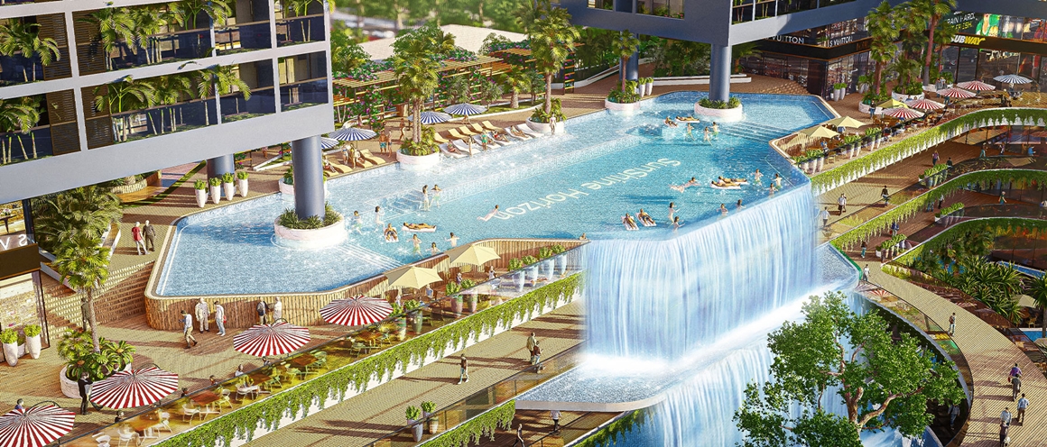 Với hơn 800 vườn treo trên ban công mỗi căn hộ cùng khu vườn nhiệt đới ngay tại trung tâm của dự án, Sunshine Horizon tựa như một khu nghỉ dưỡng thực thụ ngay giữa đô thị ồn ào, náo nhiệt. Đặc biệt, Sunshine Group còn dành rất nhiều tâm huyết để xây dựng hệ thống shophouse tại tầng khối đế của dự án để mang đến loại hình “Shopping in the Park” – Phố đi bộ mua sắm giữa công viên độc đáo. Cùng với đó là một loạt tiện ích nội khu đẳng cấp khác như hồ điều hòa; tổ hợp Bungalow sinh thái; tuyến phố đi bộ, Sky bar, hồ bơi vô cực trên không,…