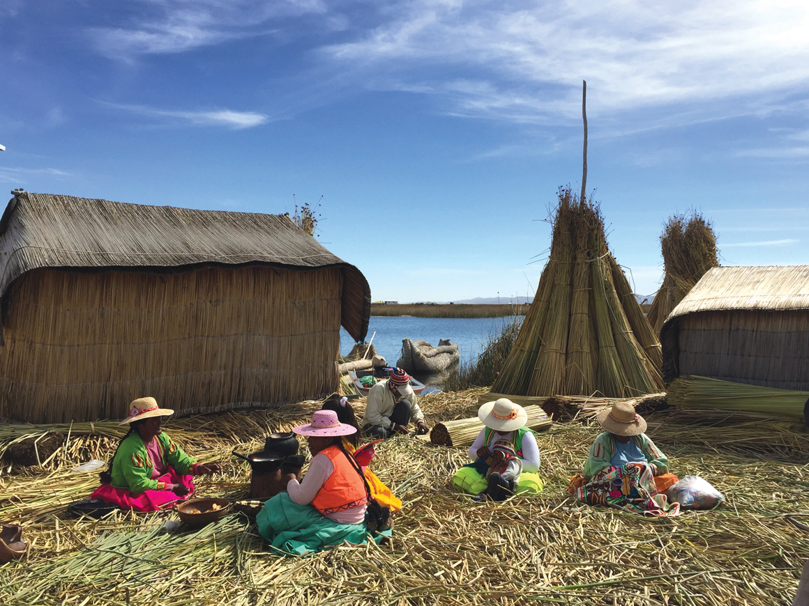 Đây cũng là nơi cư ngụ của tộc người Uru cách đây hơn 500 năm với dân số hiện tại khoảng 4.600 người. Hai hòn đảo độc đáo này được tạo nên từ những cây sậy tortora cao hai mét được bó chặt và cố định vào đáy hồ bằng dây thừng cùng cọc nhọn. Mặc dù lớp nền bằng sậy đôi khi mang đến cảm giác không dễ chịu nhưng lại đủ chắc chắn để chống đỡ được các cụm lều tranh vốn là nơi nương náu của những gia đình người bản địa.