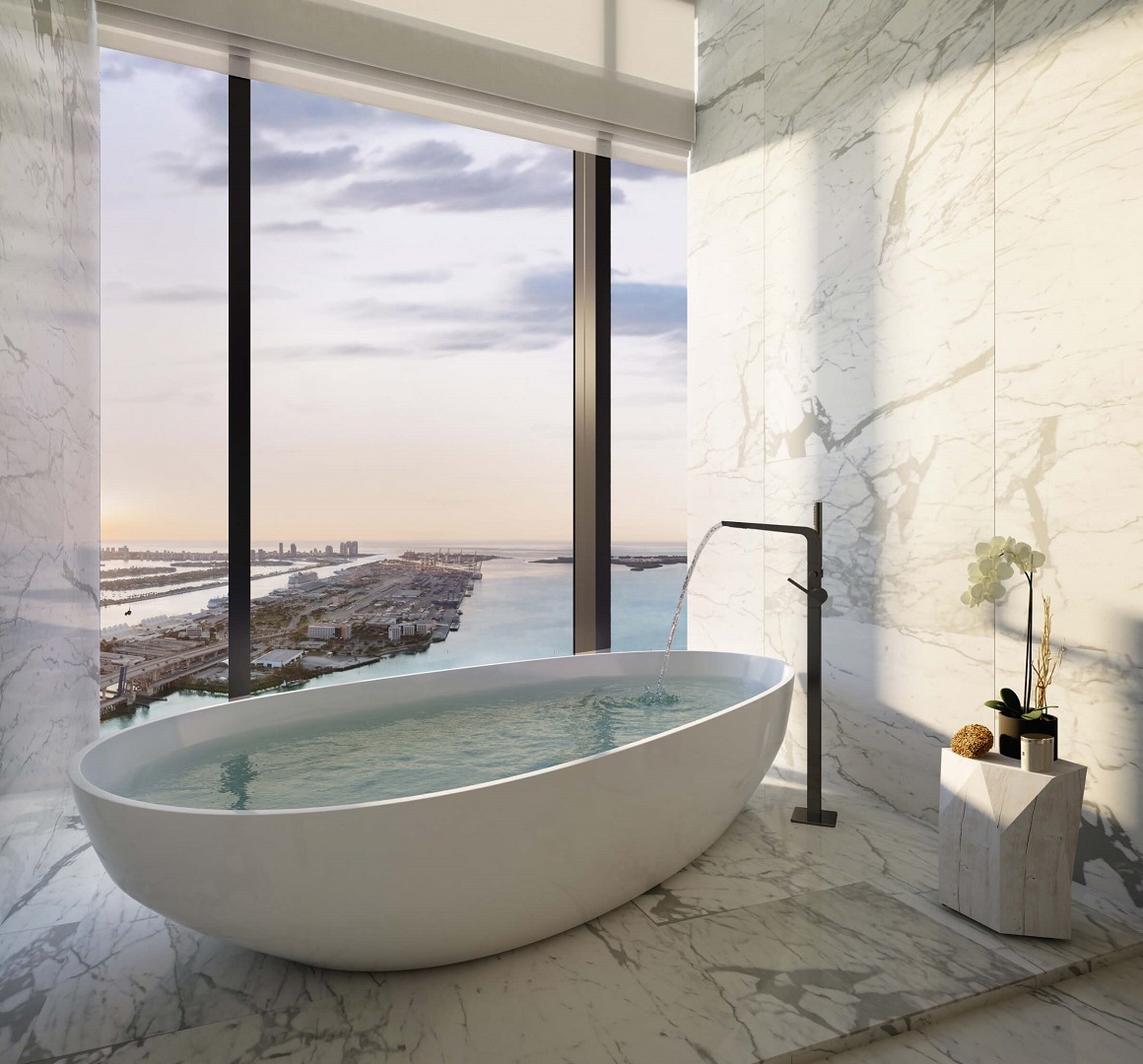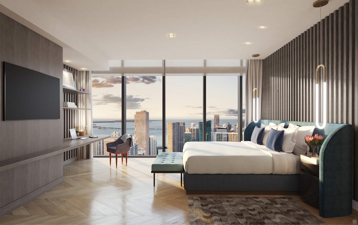 Bên cạnh số lượng siêu giới hạn chỉ 40 căn, điều khiến các căn hộ trong Sky Collection trở nên đặc biệt và có mức giá cao đến vậy chính là vị trí tuyệt đẹp. Theo bố cục, Waldorf Astoria Miami gồm 9 khối vuông xếp chồng lên nhau. Toàn bộ các căn Sky Collection sẽ nằm ở khối thứ 8 – một trong những vị trí cao nhất của tòa tháp, mở ra tầm nhìn rộng 2 về phía biển xanh tuyệt đẹp. Kết hợp cùng thiết kế phủ kính toàn bộ tòa nhà, gia chủ sẽ được trải nghiệm cảm giác sống giữa những tầng mây huyền bí, tựa như đang ở trong một thiên đường nghỉ dưỡng thực thụ.