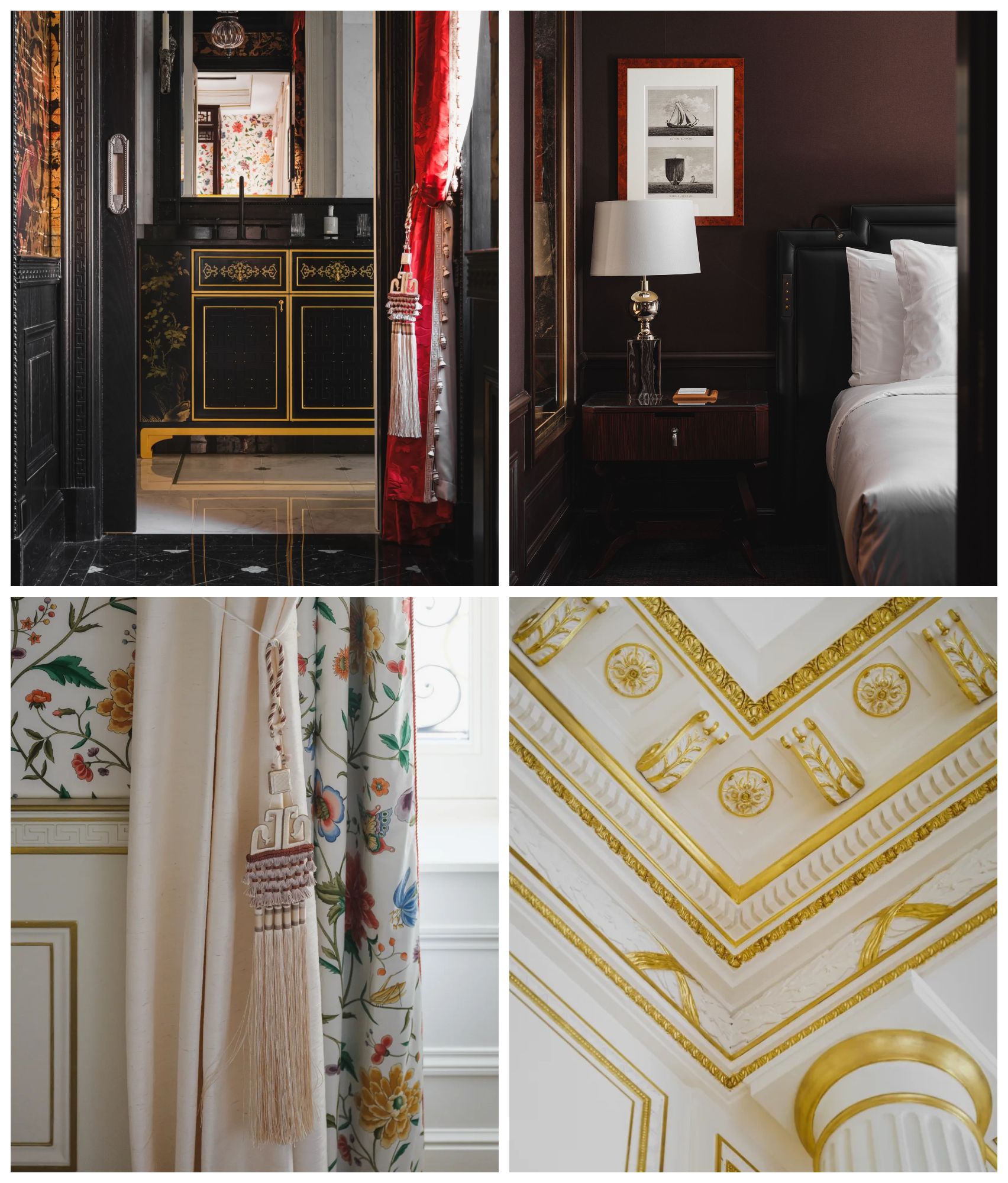 Cuộc đại tu gần đây của tòa nhà do nhà thiết kế Pierre-Yves Rochon thực hiện mất tận bốn năm. Các bức tường bị phá bỏ, trần nâng lên và số lượng phòng giảm đi một nửa (người thuê tòa nhà trước đây cũng là khách sạn) để tạo thành 10 suite cùng 5 phòng lưu trú tiêu chuẩn xa hoa. Hiện thực hóa tầm nhìn của đồng chủ tịch Chopard kiêm giám đốc nghệ thuật Caroline Scheufele, suite Paraiba (đặt theo tên chiếc vòng cổ tourmaline Precious Lace Paraiba) có các tấm phủ tường thêu tay lấy cảm hứng từ vùng nhiệt đới. Phong cách nội thất Chinoiserie điểm tô phòng Jade, bao gồm đồ sơn mài quyến rũ, nội thất tông đen, đỏ và vàng, bên cạnh loạt tác phẩm chạm khắc dạng lưới lấy cảm hứng từ đồ cổ châu Á. Tuy nhiên, sự đẳng cấp tột cùng được minh chứng rõ ràng bên trong Appartement Chopard trên tầng sáu. Căn phòng dát vàng lấp lánh với đèn chùm pha lê treo trên trần cao 17 feet, lò sưởi đá cẩm thạch và màn che giường đồ sộ gợi nhớ đến cung điện Versailles, mang đến không gian vương giả cho vị khách thượng lưu sẵn lòng chi trả 14.000 € cho một đêm lưu trú.
