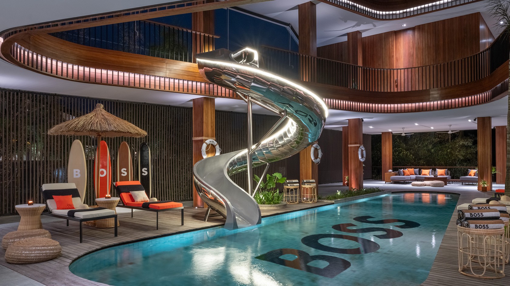 Một biệt thự trên hòn đảo Bali đầy thơ mộng đã được phù phép qua bàn tay của kiến trúc sư nổi tiếng Alexis Dornier để trở thành khu nghỉ dưỡng thiên đường nơi trần gian – BOSS House Bali. Biệt thự này là hiện thân của kiến trúc rực rỡ, kết hợp hài hòa giữa các yếu tố truyền thống và thiết kế hiện đại, mang đến tầm nhìn ngoạn mục ra vùng nông thôn Bali. Điểm nhấn đặc biệt của biệt thự là hồ bơi độc đáo với cầu trượt nước xoắn ốc kết nối các tầng, tạo nên một không gian thư giãn hoàn hảo.