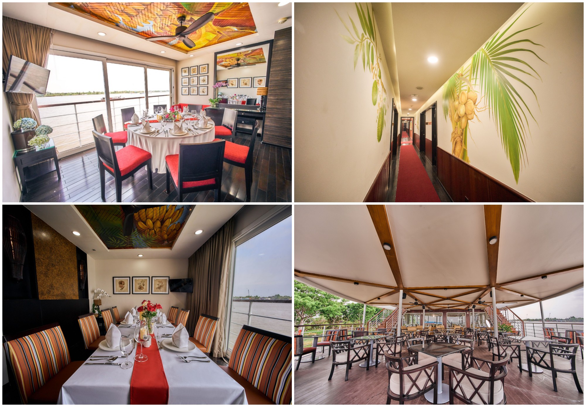 Du thuyền được thiết kế 3 tầng rộng rãi và có sức chứa lên đến 350 khách. Tại tầng trệt và tầng 1, không gian du thuyền bao gồm 18 phòng VIP riêng tư, thích hợp cho những buổi chiêu đãi đối tác trang trọng hay buổi họp mặt gia đình thân mật; sảnh tiệc sang trọng dành cho 70 khách; và Panorama Lounge cho 60 khách. Trong khi đó, tầng thượng rộng đến 700m2 với góc nhìn toàn cảnh 3600 là nơi lý tưởng để tổ chức những sự kiện ngoài trời, tiệc cưới, dịp kỷ niệm đặc biệt hay đơn giản chỉ để ngồi thư giãn, nhâm nhi ly cocktail mát lạnh tại quầy bar trung tâm và ngắm hoàng hôn buông dần trên vùng đồng bằng sông nước đầy thơ mộng.