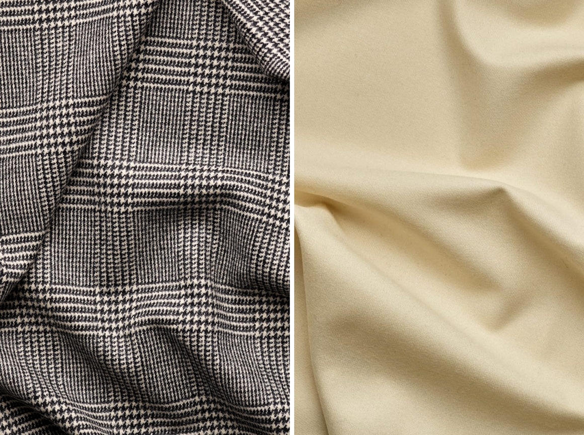 Tweed – loại vải chưa bao giờ vắng mặt trong những bộ sưu tập mùa đông được Fox Brothers biến tấu thú vị với đường dệt hoạ tiết xương cá tinh xảo với màu Char-navy lạ mắt. Khi Char-navy được kết hợp cùng họa tiết houndstooth (họa tiết răng sói) thịnh hành, sự phối hợp này lại mang đậm nét cá tính, nổi bật nhưng vẫn đầy tinh tế.