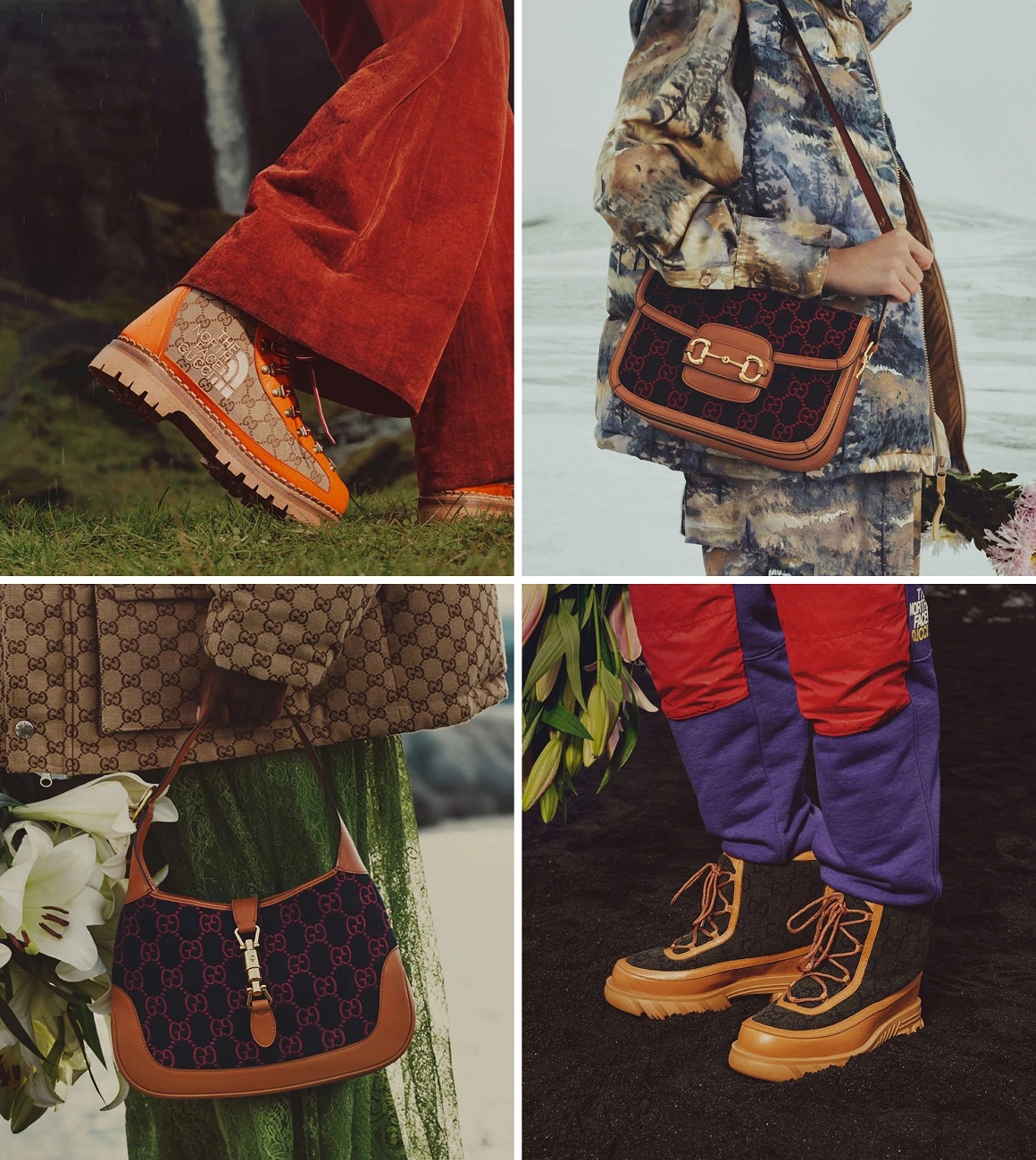 Các nhà thám hiểm gan dạ của Gucci đã đi xuyên những ngọn núi Bắc Âu hùng vĩ, lang thang trên biển cát đen núi lửa, rong ruổi trên bờ sông băng giá, đến những ngọn đồi xanh mướt và thác nước kỳ ảo, mở ra những rung cảm độc đáo và khơi dậy tinh thần phiêu lưu khám phá vốn là nguồn cảm hứng căng tràn cho lần hợp tác này.