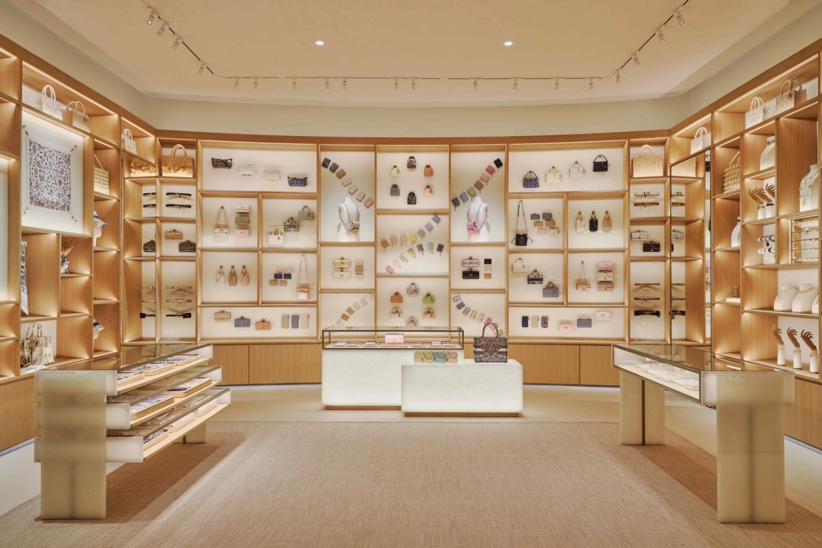 Thiết kế kiến trúc ấn tượng này đóng vai trò như một cánh cổng dẫn vào thế giới tầng tầng lớp lớp và những câu chuyện fascinante, trong đó mỗi một góc nhỏ đều ẩn chứa những bí mật để khiến chúng ta thỏa sức khám phá. Bên trong, không gian rộng 1.000 mét vuông chào đón du khách khám phá thế giới kỳ diệu của Dior, hòa quyện hoàn hảo với các vật phẩm tôn vinh kỹ nghệ thủ công truyền thống của Thái Lan. Từ các bộ sưu tập Ready-to-Wear của Maria Grazia Chiuri đến những mẫu menswear mới nhất của Kim Jones, bao gồm giày, phụ kiện, túi xách, trang sức và các dòng sản phẩm bàn ăn Dior Maison, mỗi khu vực đều được thể hiện sống động trong không gian tinh tế, hiện đại, được nâng niu bởi những chất liệu tự nhiên như tre, gỗ và raffia, đồng thời cũng tạo nên điều kiện để các biểu tượng của Dior tỏa sáng – từ ngôi sao may mắn đến toile de Jouy và họa tiết in Plan de Paris.