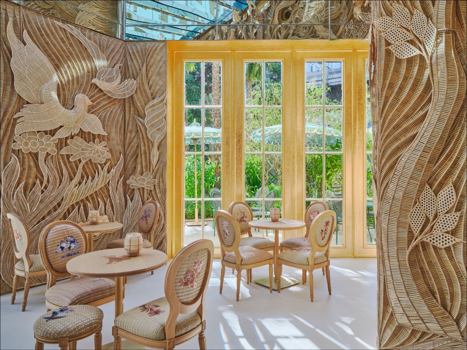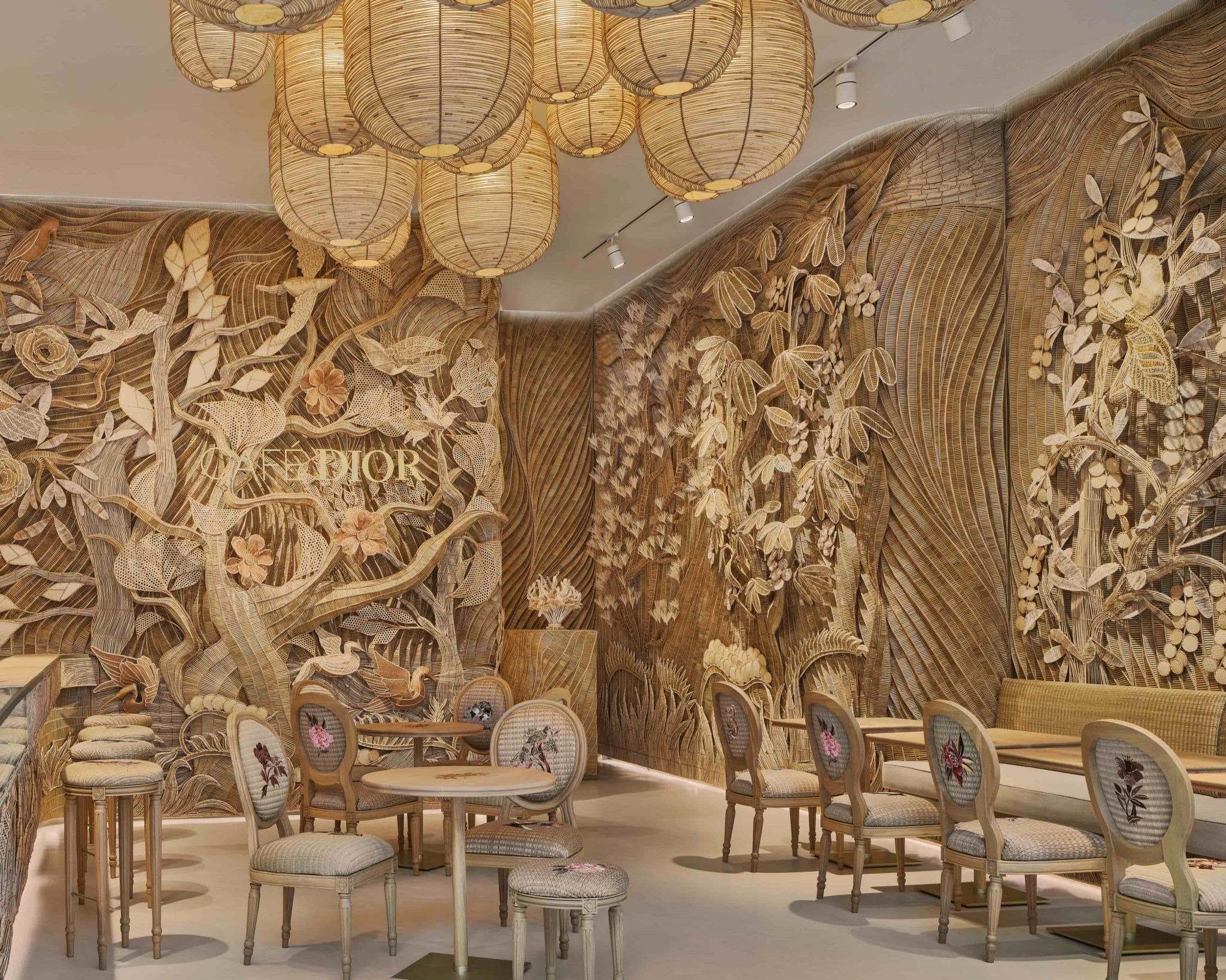 Nếu muốn dừng chân nghỉ ngơi, Café Dior mang đến hành trình hoàn hảo kết hợp mọi giác quan. Kết hợp giữa những thú vui ẩm thực và nghệ thuật tiếp đón Pháp, nơi đây giới thiệu “thế giới sáng tạo” độc đáo thuộc về riêng nghệ sĩ Korakot Aromdee, được bao quanh bởi khung cảnh thực vật và động vật bằng tre. Những cây cối, hoa lá và chim chóc trong bức tranh mộng mơ này dường như đang sống dậy, như thể ở trong một không gian ba chiều. Đây chính là thiên đường để đầu bếp ba sao Michelin Mauro Colagreco trổ hết tài nghệ thông qua một thực đơn tráng miệng thơm ngon, được lấy cảm hứng từ thiên nhiên và di sản couture của Maison.