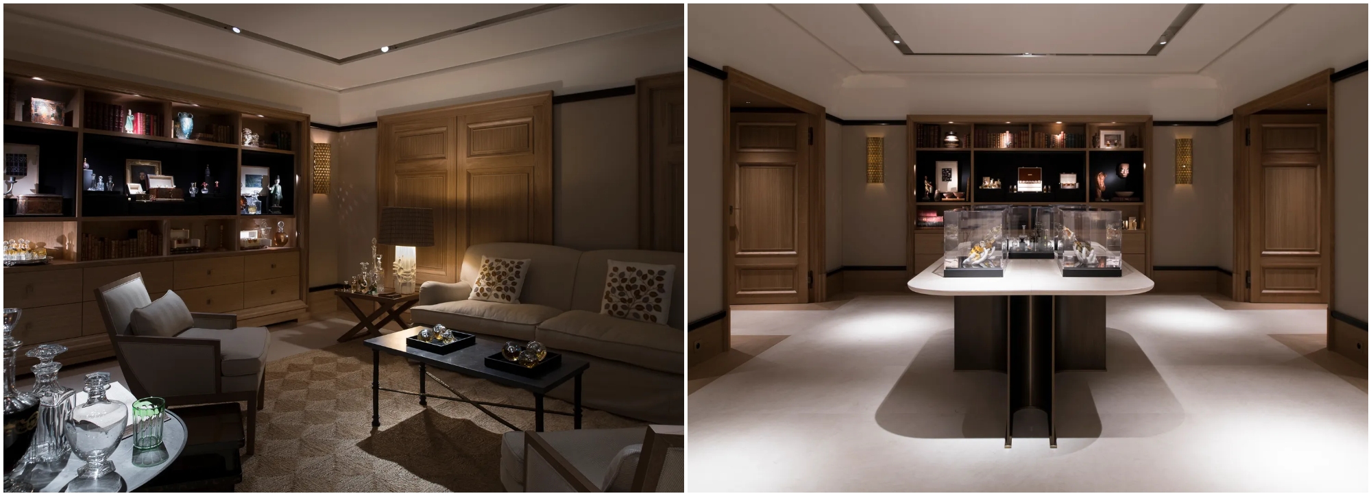 hi bước vào không gian rộng 400 mét vuông, khách được chào đón bởi một hòn đảo có chữ lồng màu đen, phía trên là tủ kính tự hào trưng bày khoảng 70 loại nước hoa mang tính biểu tượng của Henry Jacques. Người đứng sau ý tưởng kết hợp nét thẩm mỹ dung hòa hai thế giới cũ và mới không ai khác chính là giám đốc nghệ thuật thương hiệu, nhà thiết kế nội thất nổi tiếng Christophe Tollemer, đồng thời chịu trách nhiệm thiết kế những chiếc lọ pha lê, nổi bật nhất là bộ sưu tập Les Classiques. Tollemer chia sẻ: “Tôi thích sử dụng từ ‘home’ hơn là ‘boutique’ vì đó thực sự là nơi mỗi người muốn tìm thấy chính mình. Bạn có thể nhận ra các mã tương tự như trong chuỗi boutique Henry Jacques khác ở đây, nhưng chúng hiện đã được nâng lên tầm cao hơn”.