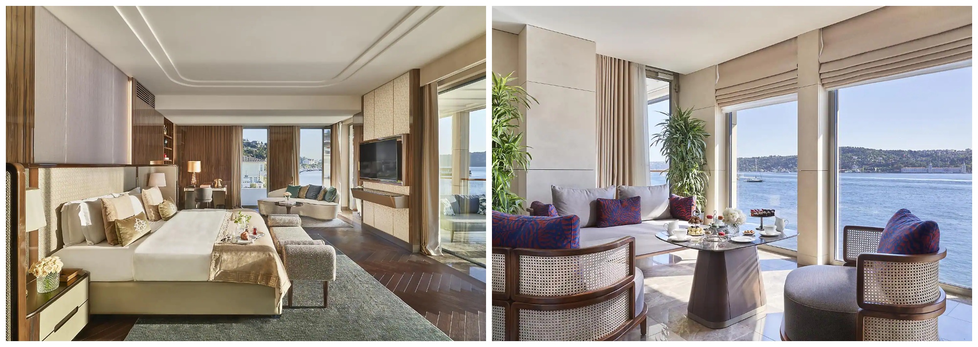 Mang đến sự sang trọng tột cùng, Royal Bosphorus Suite sang trọng có giá từ 44.145 USD một đêm. Thiên đường trải rộng trên diện tích 5.091 foot vuông có mặt tiền dài 164 foot, kết nối liền mạch với hai hoặc bốn phòng ngủ khác, phòng tập thể dục riêng, khu vườn mùa đông cũng như phòng sinh hoạt, ăn uống, nhà bếp đầy đủ tiện nghi (có lối vào riêng cho nhân viên) và bể sục.