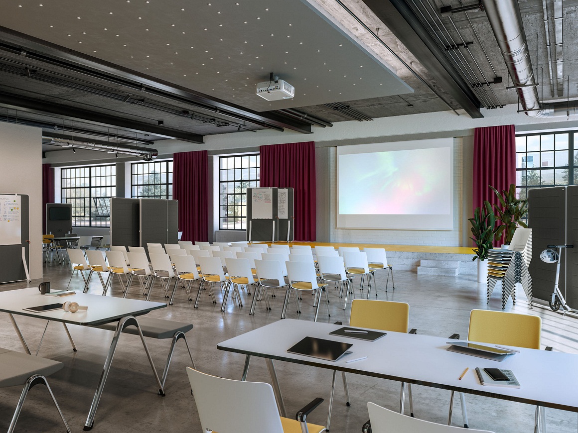 Các chuyên gia tại Interstuhl đã nghiên cứu và dành nhiều thời gian thử nghiệm để mang đến giải pháp di động cho đồ nội thất, kết hợp sử dụng nhiều không gian mở để tối ưu diện tích. Đặc biệt, mỗi sản phẩm đều có thể đảm nhiệm nhiều chức năng, phù hợp với bất kỳ không gian nào. Ví dụ như những chiếc ghế được lắp chân xoay để có thể đi theo bàn làm việc riêng hoặc ghép thành bàn lớn tiện cho các cuộc họp.