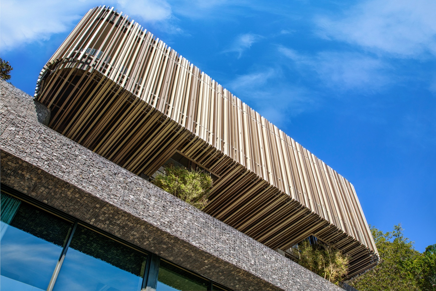 Một chiếc hộp với những thanh gỗ mỏng thẳng đứng trôi lơ lửng trên sân thượng, cho phép những cây bụi rừng bên dưới phát triển đến độ cao đó, với các màn hình có thể mở ra hoặc đóng vào để điều chỉnh lượng ánh sáng tự nhiên cho không gian bên trong. Cấu trúc này được tạo nên bởi một loại nhôm rất bền nhưng lại có trọng lượng nhẹ đến khó tin, mô phỏng theo các tông màu khác nhau của vỏ cây, một giải pháp lâu dài để vượt qua những mùa khắc nghiệt ở Cape Town.