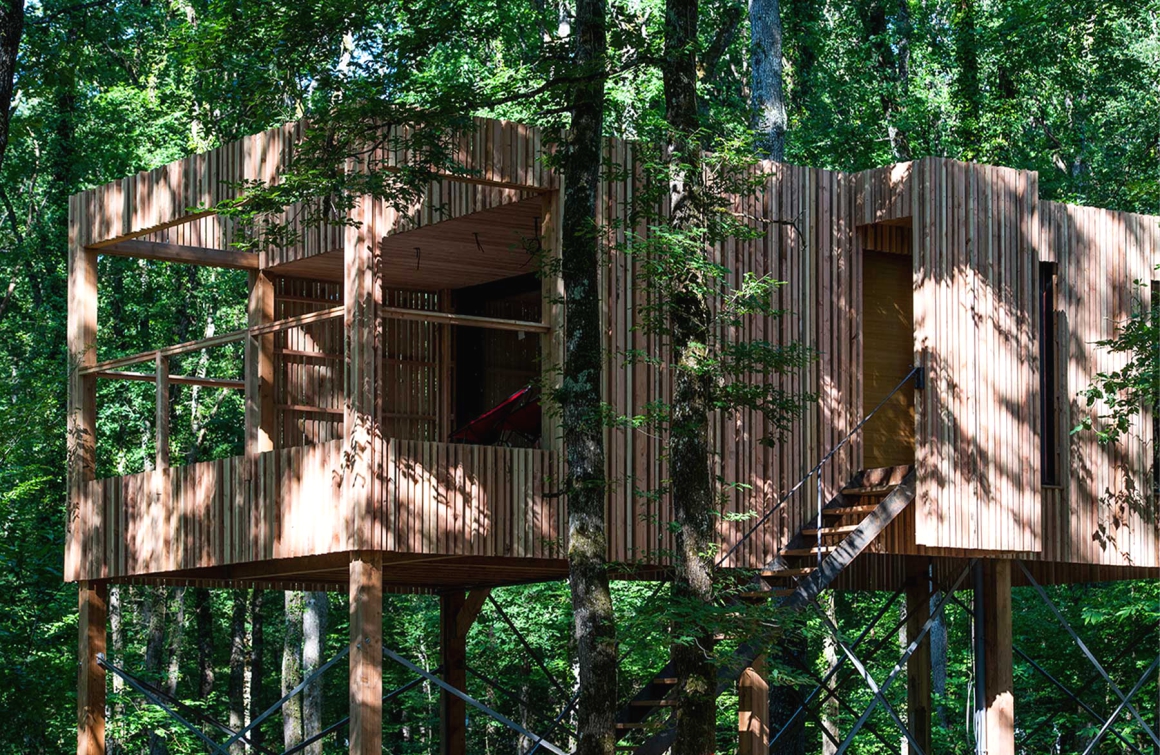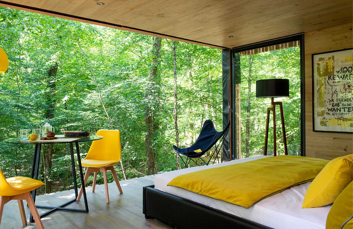 Tọa lạc trên 750 mẫu đất rừng, khách sạn Loire Valley Lodges vô cùng đặc biệt b 18 ngôi nhà trên cây hiện đại với sân hiên mát mẻ, tất cả nằm trong một trang trại rộng lớn. Ngoài khung cảnh gần gũi với tự nhiên, du khách còn có thể giải khuây trong hồ bơi ngoài trời, nhà hàng tôn vinh các nhà cung cấp thực phẩm địa phương và nơi trưng bày nghệ thuật đương đại.