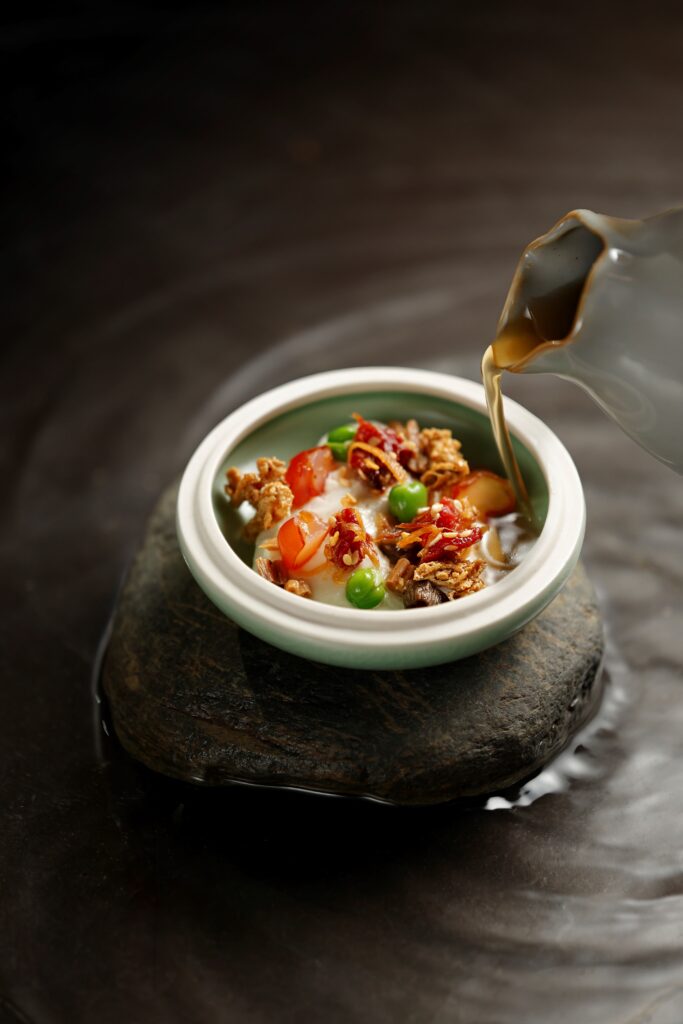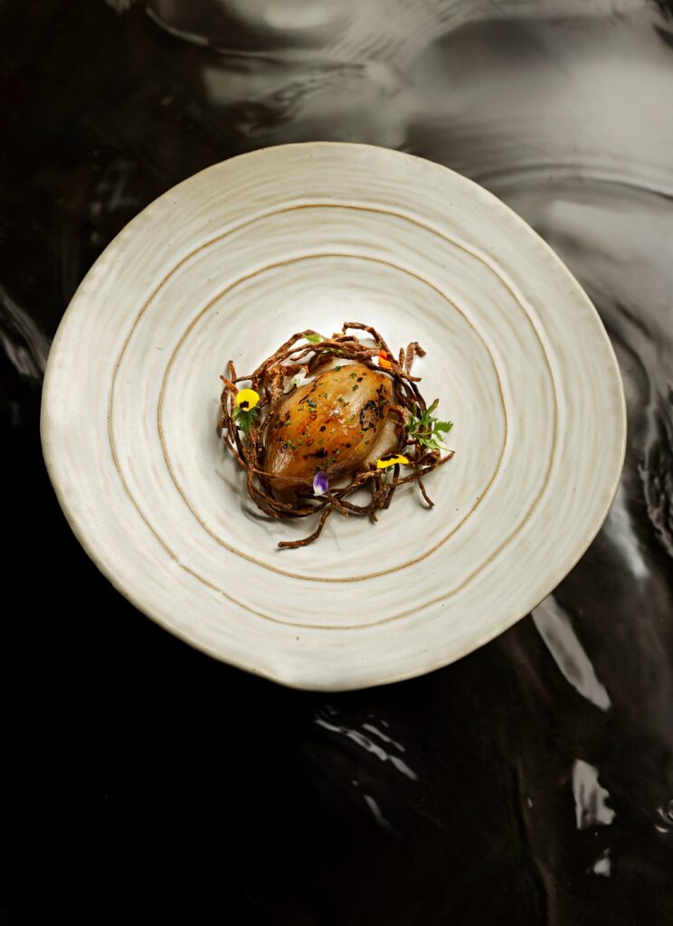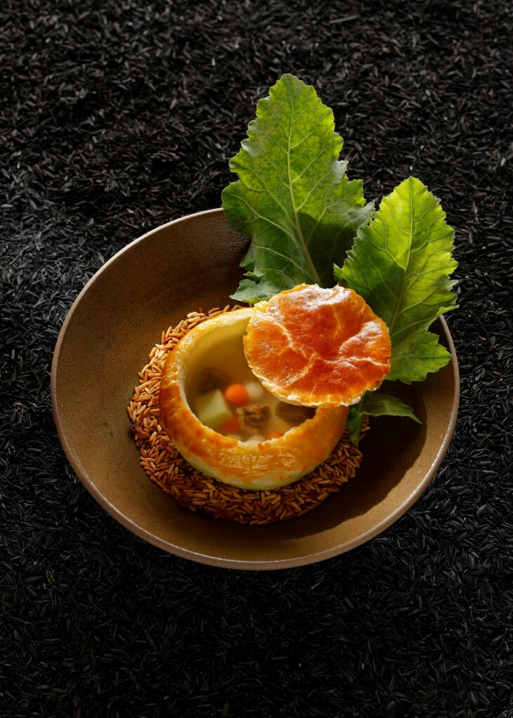 Mỗi món ăn trong thực đơn đều được khởi nguồn từ sự trân trọng đối với nguyên liệu bản địa, từ từng hạt đậu, trái cây, lá rau cho đến loại nấm quý hiếm. Tất cả được nuôi dưỡng thuận mùa, đón nắng gió đồng bằng hay sương mát núi rừng, rồi giữ lại tinh túy để trở thành những “mảnh ghép” giàu cảm hứng trên bàn tiệc.