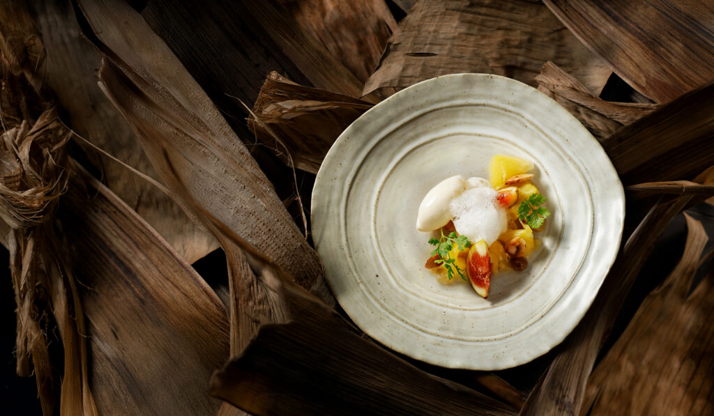 Mỗi món ăn trong thực đơn đều được khởi nguồn từ sự trân trọng đối với nguyên liệu bản địa, từ từng hạt đậu, trái cây, lá rau cho đến loại nấm quý hiếm. Tất cả được nuôi dưỡng thuận mùa, đón nắng gió đồng bằng hay sương mát núi rừng, rồi giữ lại tinh túy để trở thành những “mảnh ghép” giàu cảm hứng trên bàn tiệc.