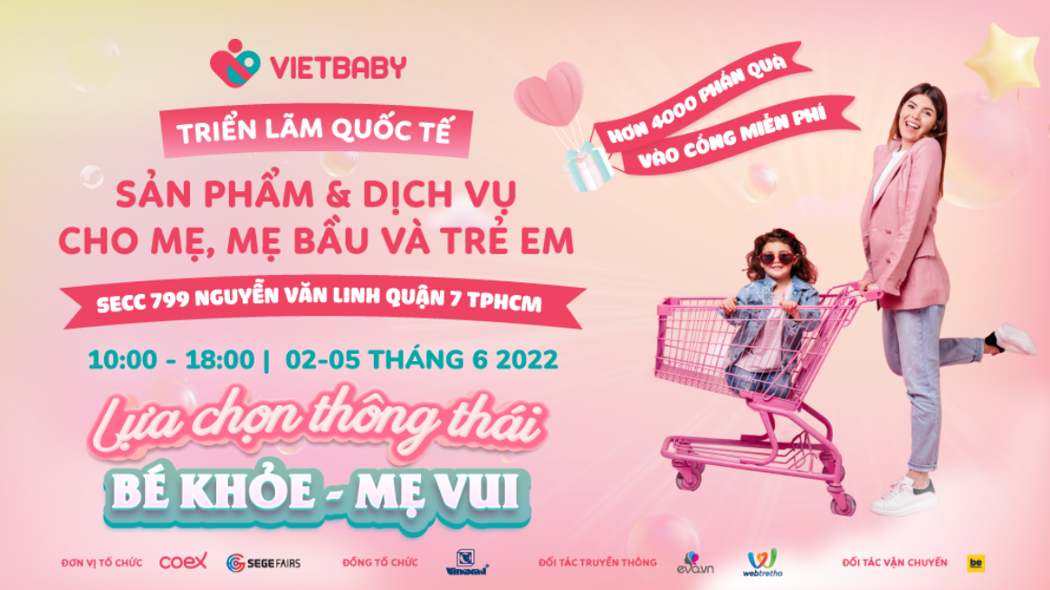 Sáng ngày 2/6/2022, triển lãm quốc tế sản phẩm, dịch vụ cho mẹ, mẹ bầu và trẻ em – Vietbaby 2022 với chủ đề “Lựa chọn thông thái, bé khỏe – mẹ vui” sẽ khai mạc tại Trung tâm triển lãm và hội nghị Sài Gòn – SECC, 799 Nguyễn Văn Linh, Quận 7, TP.HCM. Triển lãm mở cửa miễn phí từ 10h-18h trong suốt 4 ngày 2-5/6/2022.