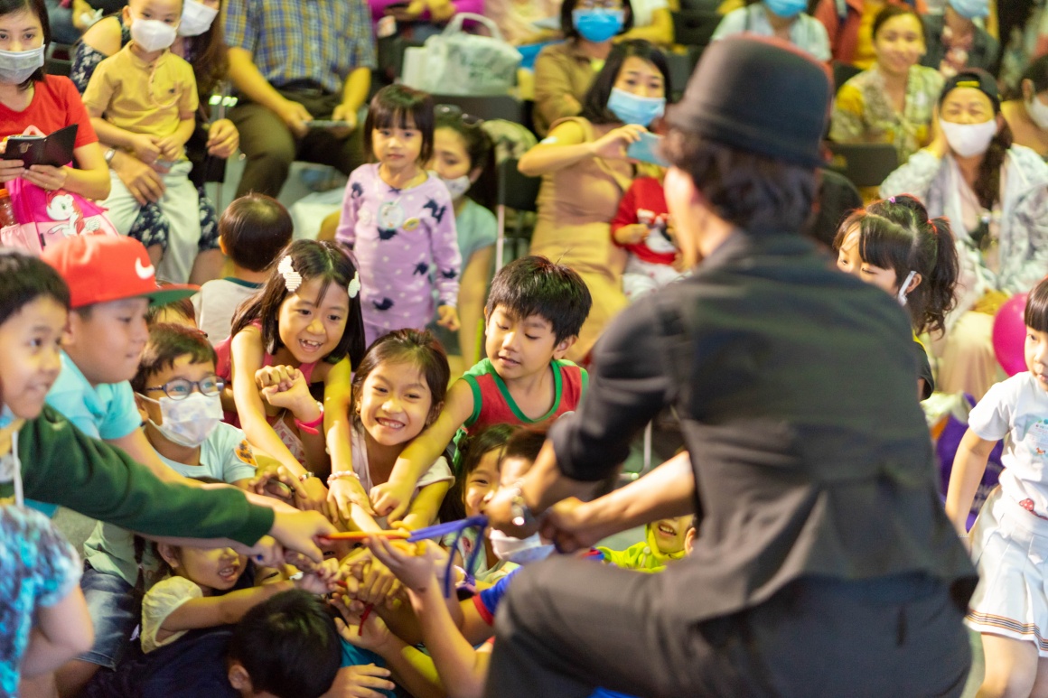 Chương trình được đón chờ hàng năm chắc chắn không thể bỏ qua là đại tiệc sinh nhật cho bé với bánh kem khổng lồ và nhiều tiết mục văn nghệ trên sân khấu.