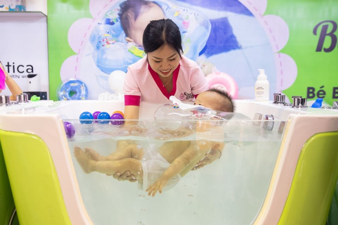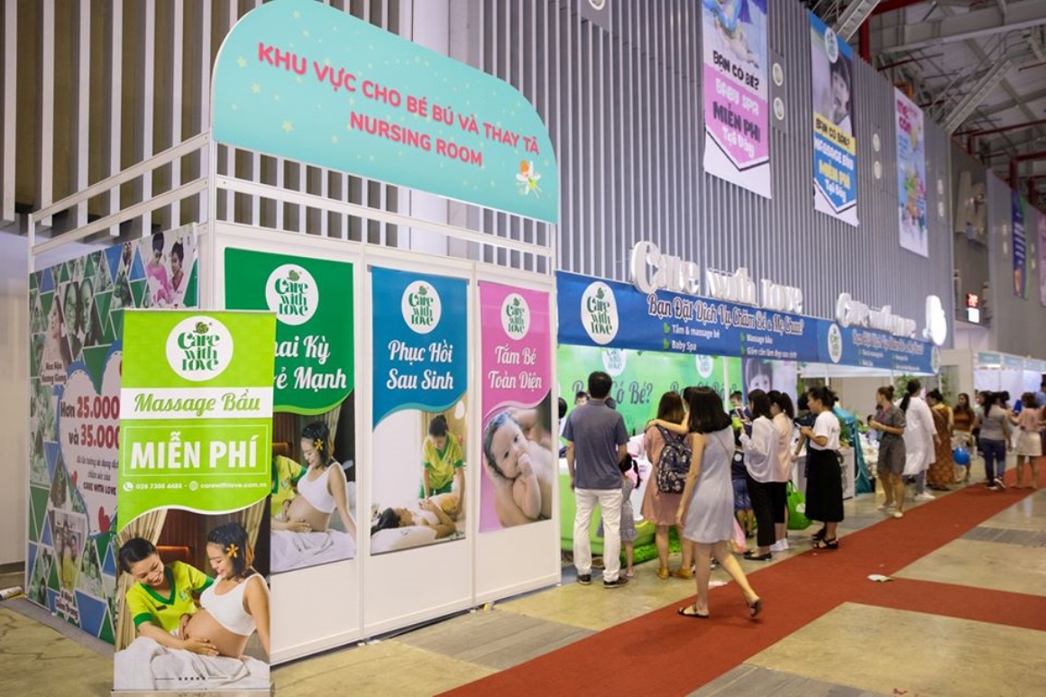 Khu vực massage miễn phí cho bé và mẹ bầu với các dịch vụ cao cấp được thực hiện bởi đơn vị triển lãm Care With Love.