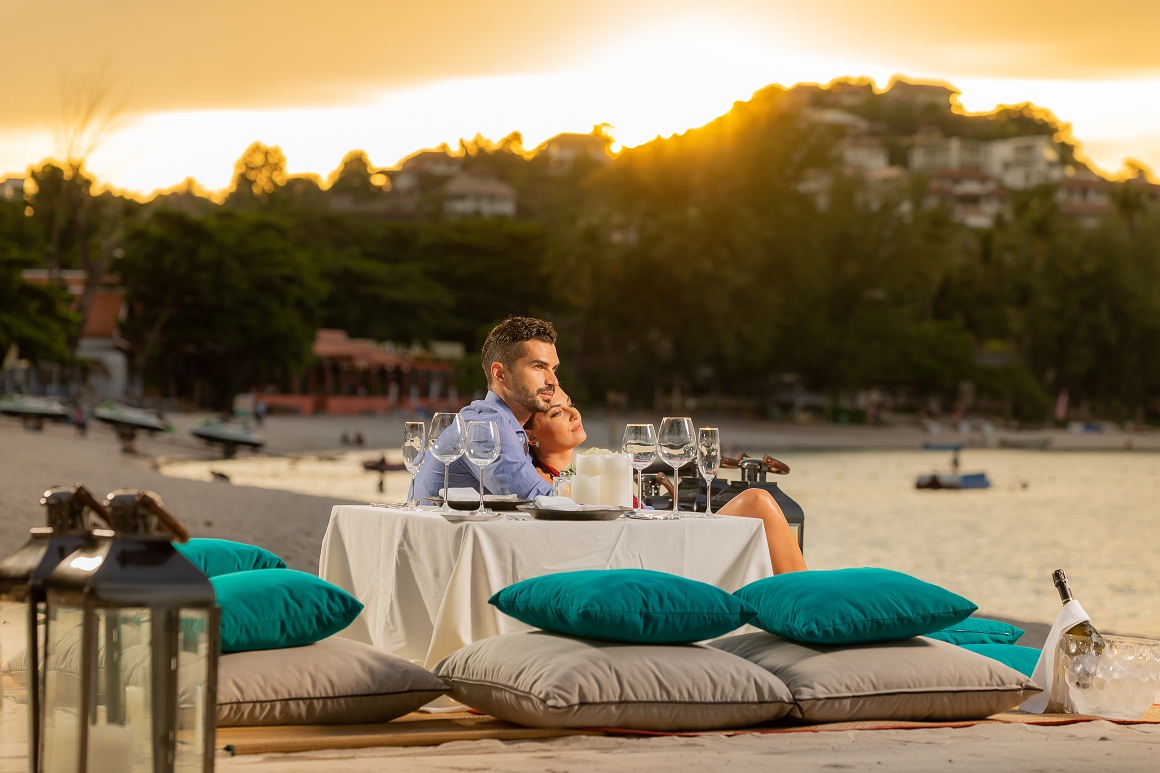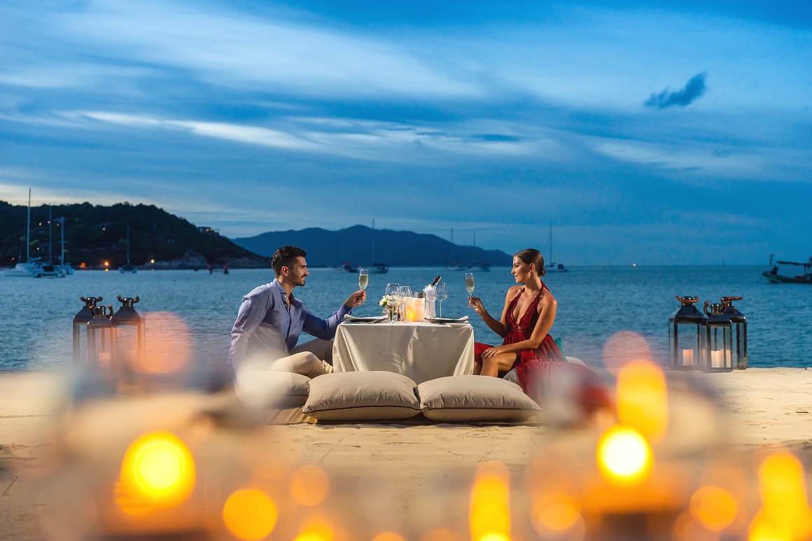 Tọa lạc trên bãi biển Mai Khao tách biệt của Phuket nhìn ra biển Andaman, khu nghỉ dưỡng Meliá Phuket Mai Khao vừa mới khai trương tháng 12 năm 2021 sẽ tổ chức đón lễ Tình Nhân đầu tiên với tiệc tối BBQ trên bãi biển riêng. Thực đơn Âu bốn món tinh tế Surf & Turf kết hợp giữa hải sản và thịt bò dành cho hai người gồm tôm hùm, thịt bò wagyu, nấm truffle và hàu. Bữa tối sẽ được tổ chức tại bãi cỏ cạnh biển, kèm cocktail ni tơ miễn phí cùng rượu vang và champagne tùy chọn. Bữa tối Valentine lãng mạn sẽ bắt đầu lúc 6 giờ tối để các cặp đôi có thể tận hưởng khung cảnh hoàng hôn ngoạn mục của bãi biển Mai Khao. Tiệc Valentine có giá từ 178 USD/hai người nếu chỉ dùng bữa tối, từ 208 USD/hai người nếu dùng kèm một chai rượu vang và cocktail chào mừng, và từ 299 USD/hai người nếu dùng thêm cocktail chào mừng và một chai champagne.