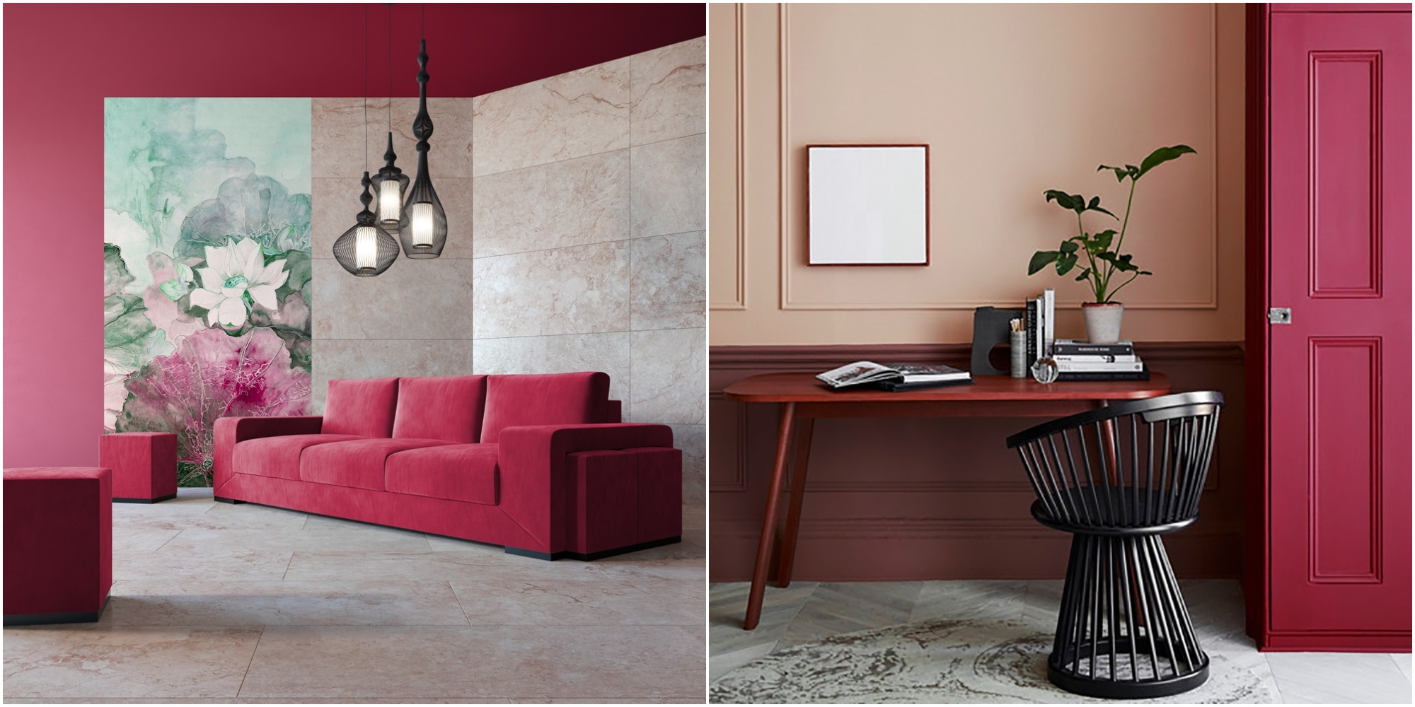 Đối với những vị chủ nhà đang tìm kiếm một thứ gì đó ấn tượng hơn, thì các màu sắc phong phú và rực rỡ như Viva Magenta sẽ vô cùng phù hợp. Viva Magenta được bầu chọn là tông màu của năm đến từ thương hiệu Pantone. Trong đó, sắc đỏ carmine được sử dụng rộng rãi trong lĩnh vực mỹ phẩm sẽ giúp ngôi nhà của bạn trở nên vui tươi và đầy cảm hứng hơn. Ứng dụng tông màu này trên các điểm nhấn như tường, nhà bếp, ghế sofa hay đồ trang trí mang lại cho không gian xung quanh sự bắt mắt và quyến rũ khó cưỡng.