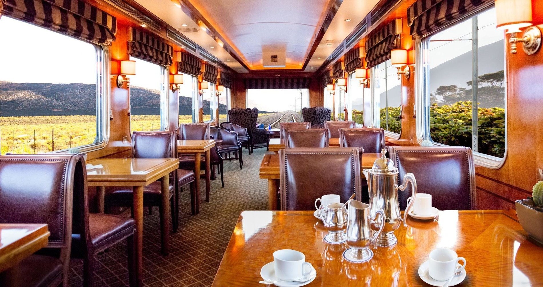 Ra đời từ những năm 1920, The Blue Train vẫn giữ vững danh hiệu là một trong những hành trình đường sắt sang trọng bậc nhất thế giới. Trong chuyến đi kéo dài 27 tiếng giữa Cape Town và Pretoria, hành khách được tận hưởng tiện nghi chuẩn khách sạn năm sao: quản gia riêng, phòng tắm lát đá cẩm thạch, bồn tắm kích thước lớn. Bữa tối là nghi lễ ẩm thực tinh tế với rượu vang Nam Phi hảo hạng, nhạc cổ điển sống và bầu không khí vương giả. Đoàn tàu từng phục vụ giới hoàng gia, nguyên thủ và người nổi tiếng, trong đó có cả Nelson Mandela và cho đến nay vẫn là chuẩn mực của du lịch xa hoa tại châu Phi.